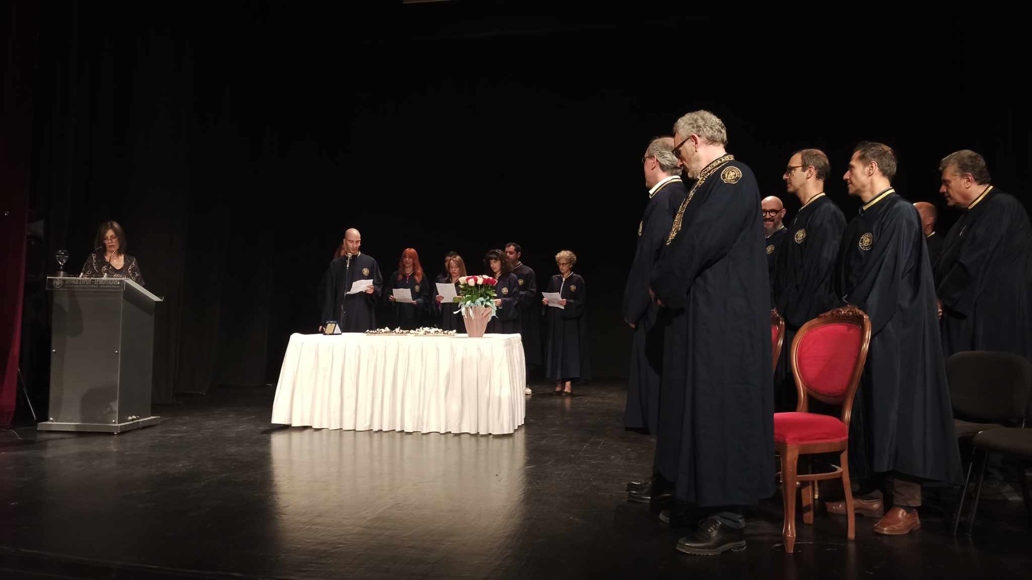 Η εκδήλωση ολοκληρώθηκε με την ορκωμοσία των φοιτητών, αλλά και τη βράβευση των αριστούχων φοιτητών, προσφορά της Δέσποινας Παρασκευαϊδου, η οποία τα τελευταία χρόνια συνδράμει οικονομικά και ηθικά το Τμήμα του Πανεπιστημίου.