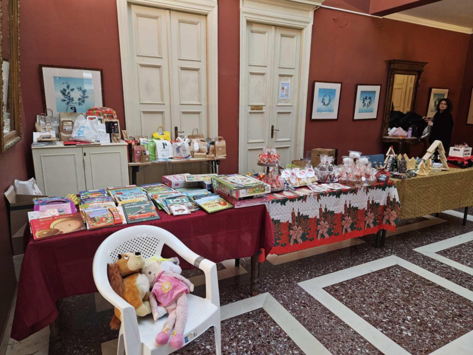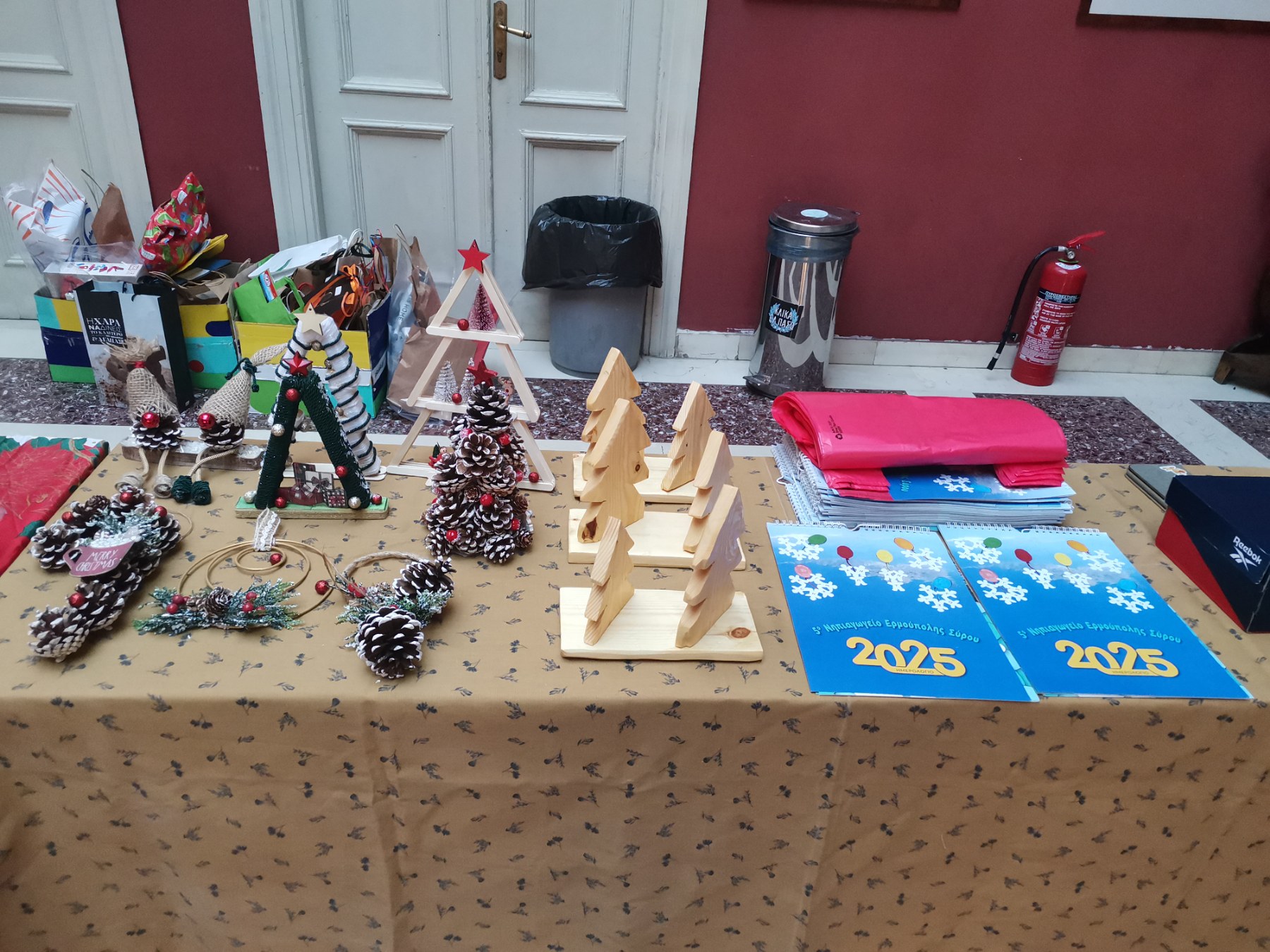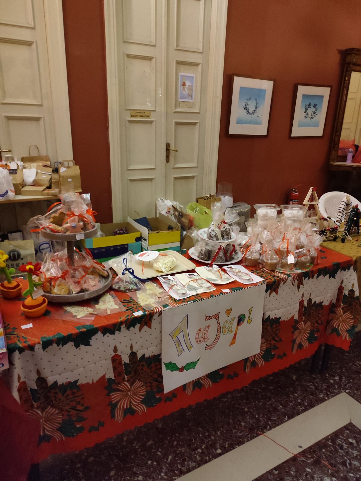 Συγκεκριμένα, το περασμένο Σάββατο το απόγευμα, στο χώρο του αίθριου ορόφου του Πνευματικού Κέντρου, με είσοδο ελεύθερη για το κοινό, τα μέλη του Συλλόγου με τη συνεργασία των μελών του, έστησαν ένα μεγάλο παζάρι με χειροποίητα στολίδια, μεταχειρισμένα βιβλία, παιχνίδια, γλυκίσματα, αλλά και ημερολόγια που τύπωσε ο Σύλλογος, με σχέδια από τους μαθητές του νηπιαγωγείου.