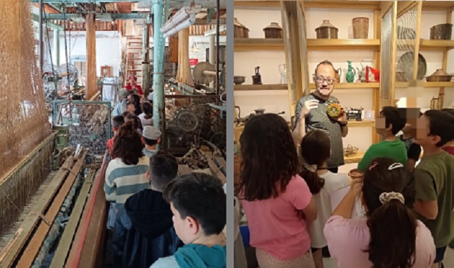 Η ξεναγός μας, η κυρία Μαργαρίτα, μας είπε πολλά σημαντικά πράγματα για το Μουσείο Κλωστοϋφαντουργίας. Το μουσείο έχει διάφορα πράγματα και κυρίως κλωστές. Στην είσοδο φορέσαμε γυναικείες και αντρικές ποδιές και μπήκαμε την τραπεζαρία όπου έτρωγαν οι εργάτριες. Προχωρώντας είδαμε ένα μεγάλο καζάνι που έβαζαν την κλωστή σε βραστό νερό και ύστερα στον χώρο του βαφείου περνούσαν τα χρώματα. Στο εσωτερικό του μουσείου υπήρχε ένα τεράστιο τραπέζι όπου δούλευαν τα κορίτσια. Εντυπωσιακό είναι να αγγίξει κανείς τα βαθουλώματα που έχουν μείνει πάνω σε αυτό από τα χέρια τους. Στη συνέχεια είδαμε τα τεράστια μηχανήματα που ύφαιναν τις πετσέτες και μάθαμε για τις «καρτέλες» που λειτουργούσαν σαν κώδικας για τα διάφορα σχέδια. Περνώντας ανάμεσα στους αργαλειούς αισθάνεσαι πόσο στενός ήταν ο χώρος εργασίας, καθώς και πόσο λεπτομερώς και προσεκτικά έπρεπε να δουλεύουν.