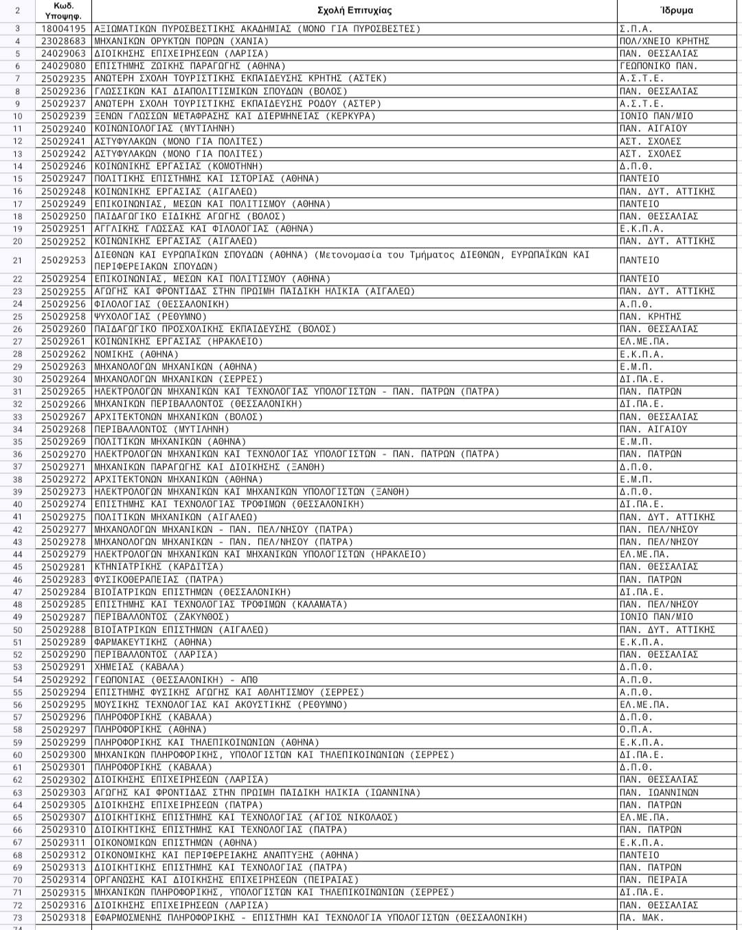 Η υψηλότερη βάση εισαγωγής για το 2025 καταγράφηκε, όπως και τις δύο προηγούμενες χρονιές, στη Σχολή Αρχιτεκτόνων Μηχανικών του Εθνικού Μετσόβιου Πολυτεχνείου, με εντυπωσιακά 20.380 μόρια.