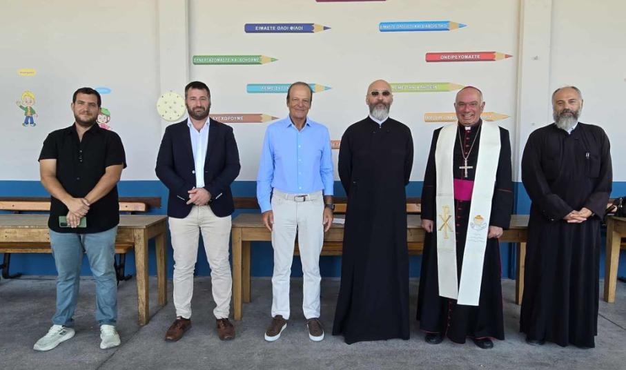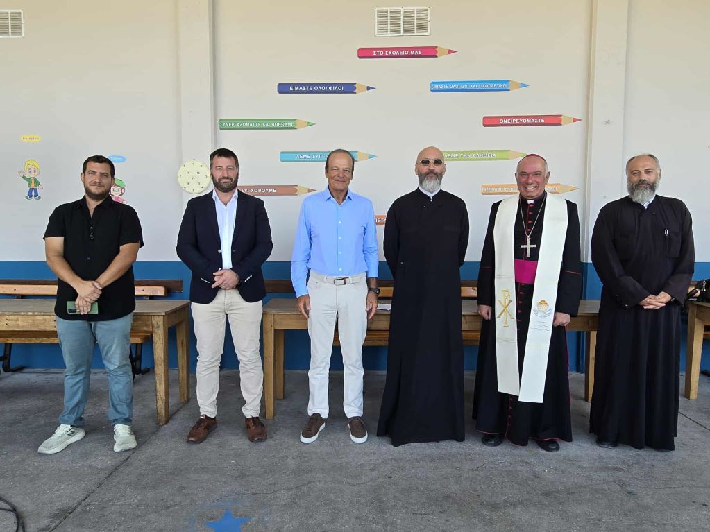 Από την πλευρά του και απευθυνόμενος προς τους μαθητές, ο Καθολικός Επίσκοπος σημείωσε χαρακτηριστικά ότι "πιστεύω ότι ήταν σωστή η επιλογή σας να φοιτήσετε σε αυτό το σχολείο, καθώς πριν από 75 χρόνια ήμουν και εγώ εδώ ως μαθητής. Πιστεύω ότι και εσείς, όπως και εγώ, θα αγαπήσετε το σχολείο".