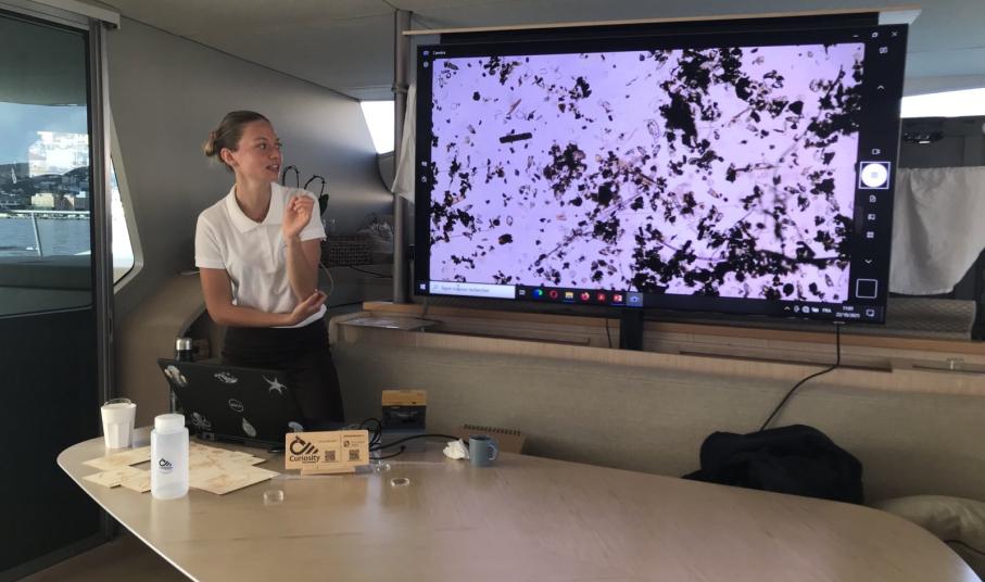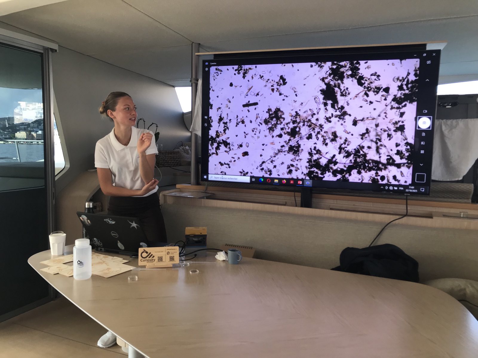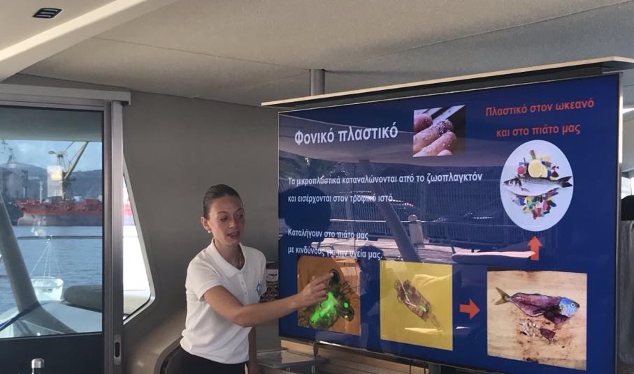 “Το δεύτερο εργαστήριο αφορούσε στην παρουσίαση του σκάφους το οποίο είναι οικολογικό. Δεν χρησιμοποιεί καθόλου συμβατικά καύσιμα και για τον λόγο αυτό έχει μηδέν αποτύπωμα CO2. Το σκάφος είναι το Modx 70, είναι προς το παρόν το μοναδικό του είδους του που υπάρχει. Στην συνέχεια μιλήσαμε για τους πλαγκτονικούς οργανισμούς και την τεράστια σημασία τους για την ζωή στον πλανήτη μας, όπως και για τα προβλήματα της ρύπανσης και κυρίως για ταμικροπλαστικά. Οι μαθητές μας είχαν την ευκαιρία μέσω διαφανειών να δουν και τα κυριότερα είδη πλαγκτόν που υπάρχουν”, σημείωσε η καθηγήτρια της σχολικής μονάδας.
