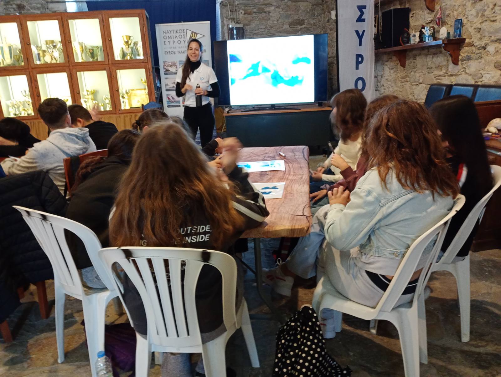 Οι μαθητές παρακολούθησαν τα εργαστήρια που υλοποιήθηκαν σε συνεργασία με επιστήμονες, εκπαιδευτές και μέλη του πληρώματος του ιστιοπλοϊκού ModX70 που είχε καταπλεύσει στο λιμάνι της Ερμούπολης, καθώς και με τη στήριξη του Ναυτικού Ομίλου Σύρου.
