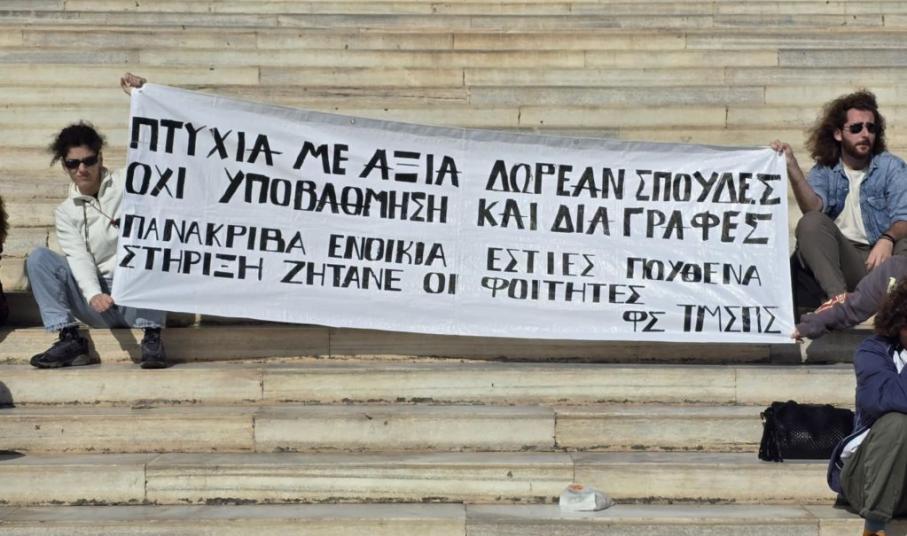 Εκτός όμως από το θέμα της στέγασης, αναφέρθηκε και σε αυτό της ακρίβειας, τονίζοντας χαρακτηριστικά ότι “βλέπουμε ότι ακόμη και στη Σύρο, ότι παραμένουν οι τουριστικές τιμές στα προϊόντα ακόμη και τον χειμώνα και εμείς καλούμαστε να τα βγάλουμε πέρα, κάτω από δύσκολες συνθήκες. Υπήρχε παλαιότερα ένα σύστημα με μειωμένες τιμές σε κάποια πράγματα για τους φοιτητές, τώρα αυτό δεν υπάρχει κάτι τέτοιο και εμείς καλούμαστε να δουλέψουμε σεζόν για να τα βγάλουμε πέρα. Αλλά πρέπει να πω ότι ούτε και αυτό δεν μπορούμε να κάνουμε, καθώς μας βγάζουν από τα σπίτια που νοικιάζουμε, καθώς όλα έχουν γίνει airbnb. Γενικότερα, δεν έχουμε από πουθενά κάποια ιδιαίτερη στήριξη. Ούτε από το Πανεπιστήμιο έχουμε κάποια ιδιαίτερη βοήθεια. Στο κομμάτι της σίτισης μπορώ να πω ότι και σε αυτό έχουμε πρόβλημα, καθώς το φαγητό της λέσχης δεν είναι ποιοτικό και έχει αυξηθεί και η τιμή του”.