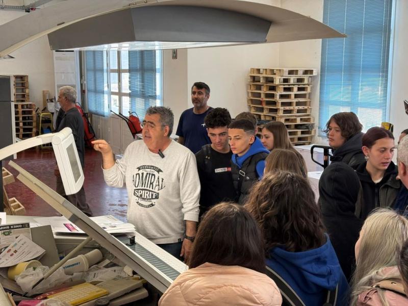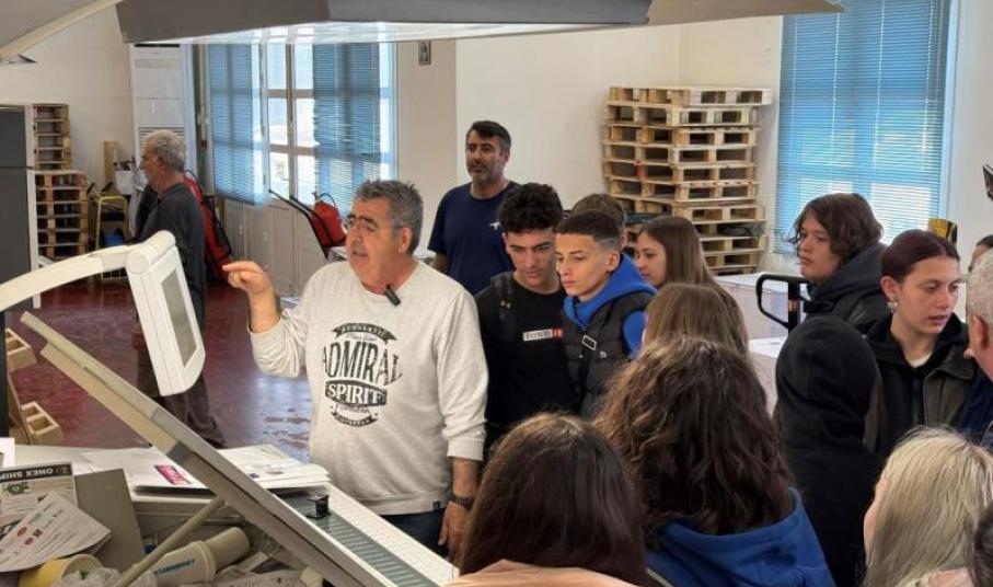 8/4: Μαθητές και εκπαιδευτικοί από το 1ο Γενικό Λύκειο Πύργου επισκέφθηκαν τις εγκαταστάσεις της Τυποκυκλαδικής Α.Ε. στη Σύρο στο πλαίσιο της εκπαιδευτικής εκδρομής τους, και παρακολούθησαν τη διαδικασία εκτύπωσης της σχολικής τους εφημερίδας, αποκτώντας πρακτική γνώση τυπογραφίας και δημοσιογραφίας.
