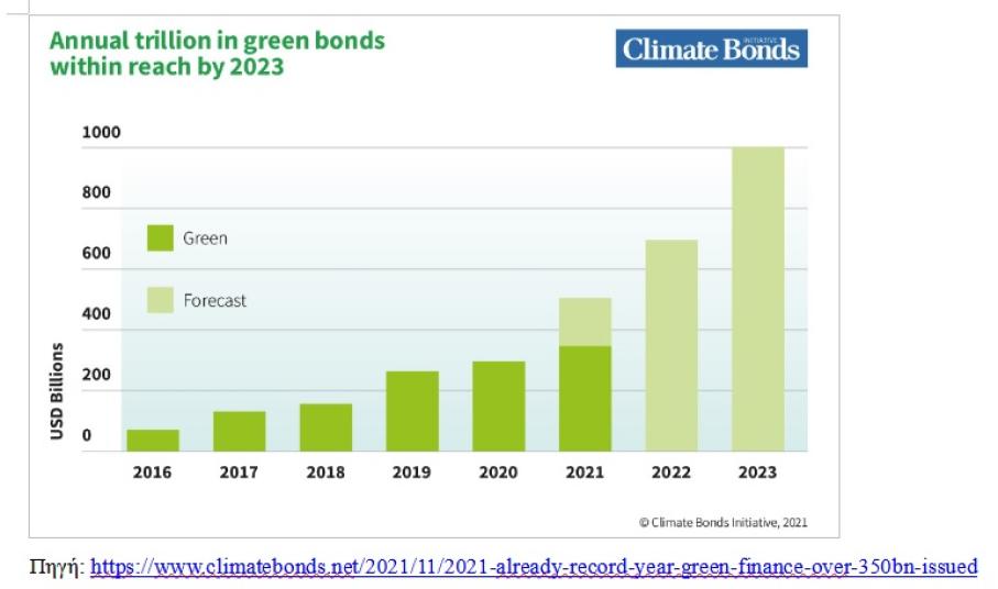 Η έκδοση πράσινου χρέους συνέχισε να αυξάνεται το τρίτο τρίμηνο του 2021, με όγκους στη βάση δεδομένων Climate Bonds Green Bond να αυξάνονται στα 108 δισ. USD ή κατά 15,8% σε σύγκριση με το τρίτο τρίμηνο του 2020. Ήταν επίσης σε αυτό το τρίμηνο που η έκδοση του 2021 ξεπέρασε τη συνολική έκδοση του περασμένου έτους των 294 USD 0,4 δισ., φτάνοντας το συνολικό ποσό των 354,2 δισ. USD YTD.) Αυτό δείχνει μια ισχυρή τάση αύξησης των πράσινων ομολόγων.