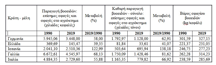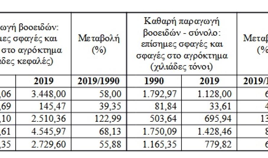 Στον τομέα της παραγωγής βοοειδών, σε κεφάλια, ή τόνους οι μειώσεις είναι πολύ μεγάλες, φέρνοντας τη χώρα μας στο χείλος της πλήρους εξάρτησης, από εισαγωγές του κοινοτικού κεκτημένου, καταβάλλοντας ποσά που δε θα αντέξει το βαλάντιο του μέσου καταναλωτή.