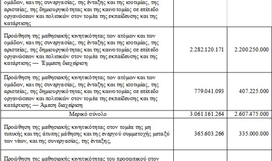 Στον πίνακα που παραθέσαμε φαίνονται τα κονδύλια που προορίζονται να καλύψουν το Erasmus+: