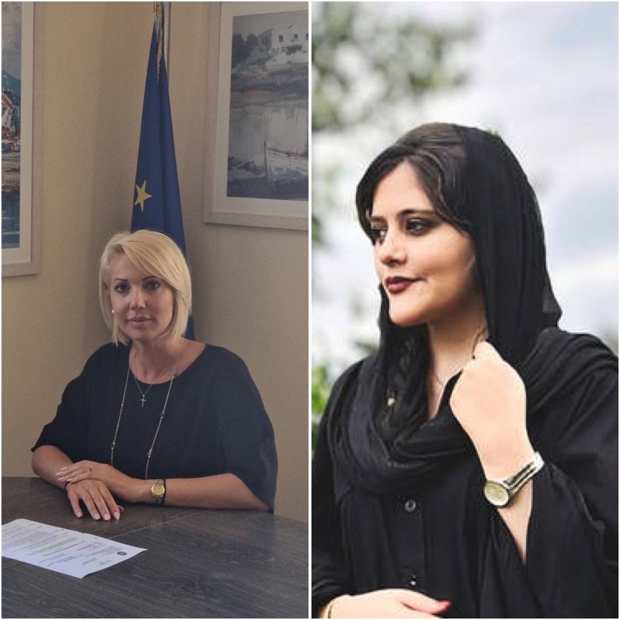 «Η Mahsa Amini δολοφονήθηκε βάναυσα και με φρικτό τρόπο από το καθεστώς του Ιράν επειδή φορούσε χαλαρά το χιτζάμπ στα μαλλιά της. Στέκομαι στο πλευρό των Ιρανών γυναικών που αγωνίζονται ενάντια στην καταπίεση και διαδηλώνουν για τη Δημοκρατία, για την ελευθερία, για τα θεμελιώδη δικαιώματα, για την ανθρώπινη αξιοπρέπεια. Οι γυναίκες στο Ιράν γράφουν ιστορία. Το σύνθημα «Γυναίκες, ζωή, ελευθερία» αντηχεί στους δρόμους του Ιράν, με τις Ιρανές γυναίκες να βρίσκονται στην πρώτη γραμμή του αγώνα.»