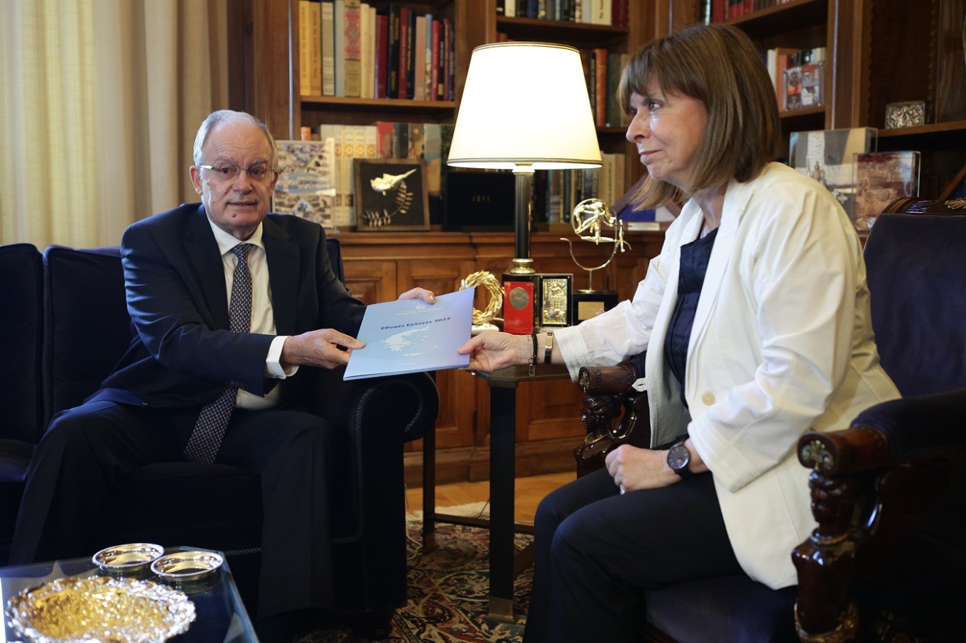 «Ολοκληρώθηκαν εκλογές και πάλι αψεγάδιαστα. Νωρίτερα συνεχάρην την κυρία Σπανού για την αδιάβλητη διεξαγωγή τους. Έχουμε ενσωμάτωση σχεδόν 100% οπότε το αποτέλεσμα είναι σαφές, αυτή τη φορά έχουμε την ποθητή δεδηλωμένη και βάσει των συνταγματικών μου υποχρεώσεων σας παραδίδω τη σύνθεση της νέας Βουλής για να προχωρήστε τις δικές σας πολιτειακές αρμοδιότητες» είπε ο κ. Τασούλας στην Πρόεδρο της Δημοκρατίας.