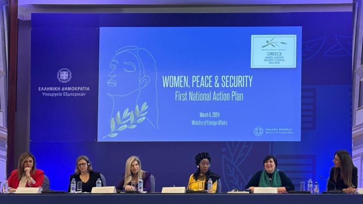 Η Ελλάδα, όπως τόνισε, ενέταξε ως βασική θεματική στην υποψηφιότητά της, ως μη μόνιμο μέλος του Συμβουλίου Ασφαλείας του Οργανισμού Ηνωμένων Εθνών, το 2025 και 2026, ακριβώς τη θεματική αυτή, «Γυναίκες, Ειρήνη και Ασφάλεια». «Θεωρώντας ότι όχι μόνο αποτελεί μια στοιχειώδη επιταγή του Διεθνούς Δικαίου, ιδίως του Δικαίου το οποίο αφορά την προστασία των δικαιωμάτων, αλλά και επειδή αποτελεί μια αυτονόητη ανάγκη για την επίτευξη παγκόσμιας κοινωνικής συνοχής και πραγματικής ισότητας».