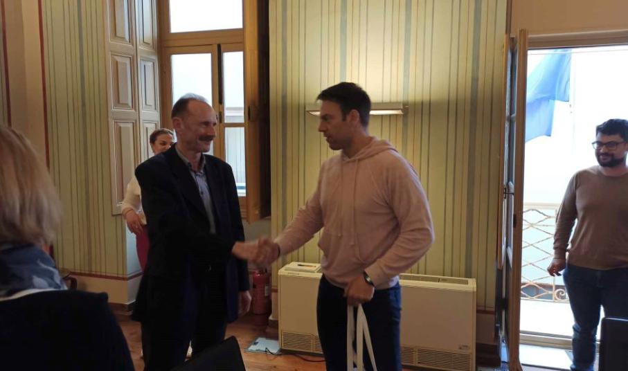 Στη συνάντηση, που πραγματοποιήθηκε στο δημαρχιακό μέγαρο, συμμετείχαν ο Ευάγγελος Αποστολάκης και οι αντιδημάρχοι Φραγκίσκος Βακόνδιος και Νίκος Σκευοφύλακας.
