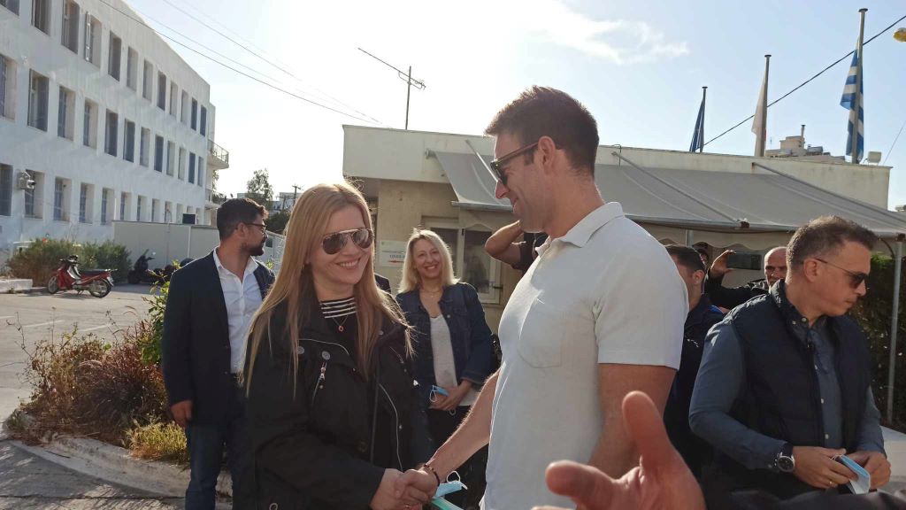 Ο κ. Κασσελάκης συνοδευόμενος από τον βουλευτή και επίτιμο αρχηγό ΓΕΕΘΑ, Ευάγγελο Αποστολάκη, την υποψήφια ευρωβουλευτή, Κατερίνα Γιαννακά, αλλά και στελέχη του κόμματος έφθασε στην πρωτεύουσα των Κυκλάδων το Σάββατο λίγο μετά τις 5 το απόγευμα.