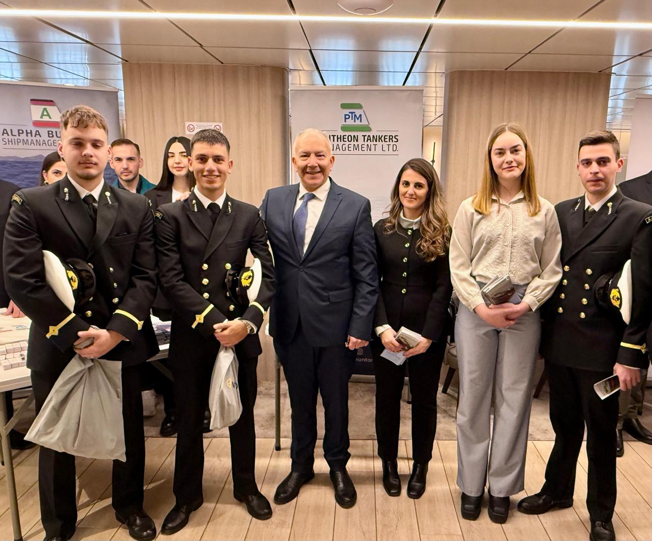 Πόσο μάλλον σήμερα, όπου έχω την τιμή να μιλώ, ενώπιον της νέας γενιάς σπουδαστών Ακαδημιών Εμπορικού Ναυτικού (ΑΕΝ), που αποφάσισαν να μπουν στο ναυτικό επάγγελμα, συνεχίζοντας την μακρά ένδοξη πορεία της Ελληνικής Ναυτιλίας.