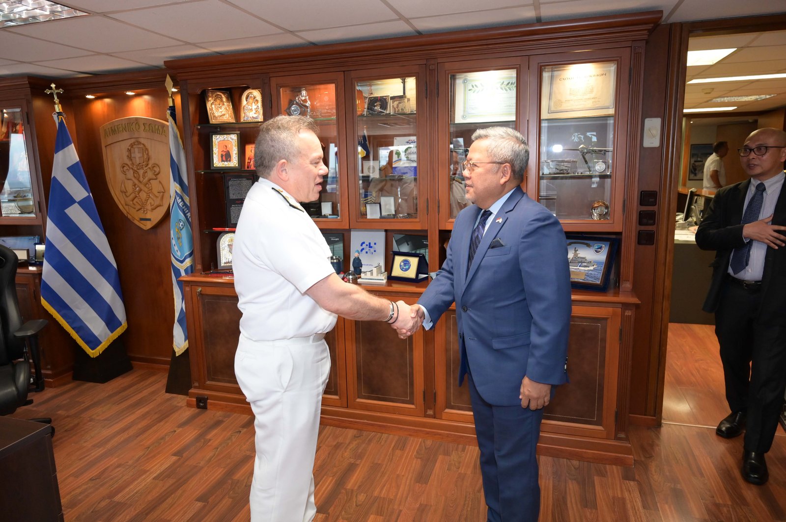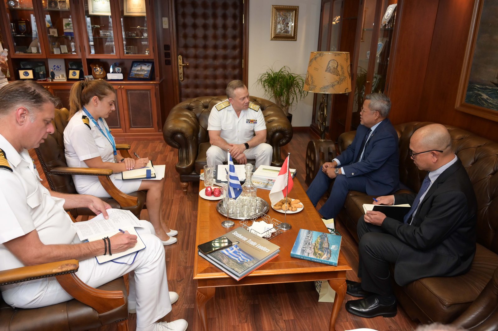 Επίσκεψη στο Αρχηγείο του Λιμενικού Σώματος – Ελληνικής Ακτοφυλακής πραγματοποίησε την 18-09-2025, ο πρέσβης της Ινδονησίας στην Ελλάδα, Dr. Bebeb A.K. N.Djundjunan, όπου συναντήθηκε με τον αρχηγό του Λ.Σ.–ΕΛ.ΑΚΤ., αντιναύαρχο Λ.Σ. Τρύφωνα Κοντιζά, καθώς και τον Α’ υπαρχηγό, αντιναύαρχο Λ.Σ. Χρήστο Κοντορουχά.