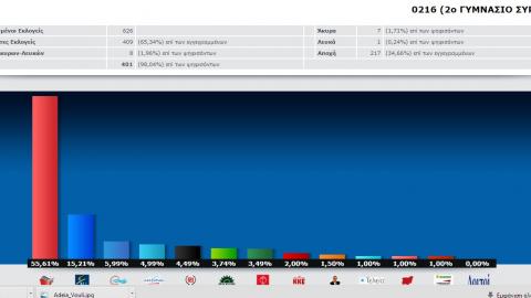 Οι καταμετρήσεις στο σύνολο των εκλογικών τμημάτων της Σύρου παρουσιάζονται αναλυτικά στα σχεδιαγράμματα.