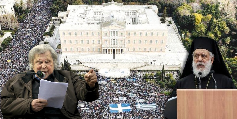Οι εκπρόσωποι των διαφόρων πολιτικών χώρων, πεποιθήσεων και ιδεολογιών, κατέθεσαν και στο συλλαλητήριο του Συντάγματος τις ήδη γνωστές απόψεις τους, όπου όμως ρόλο κύριου ομιλητή είχε τόσο η εμβληματική υπόσταση του Μίκη Θεοδωράκη, όσο και η εκκλησία, με τον Σεβασμιώτατο Μητροπολίτη Σύρου, Δωρόθεο Β΄, ο οποίος διατύπωσε τις θέσεις της Ιεράς Συνόδου.