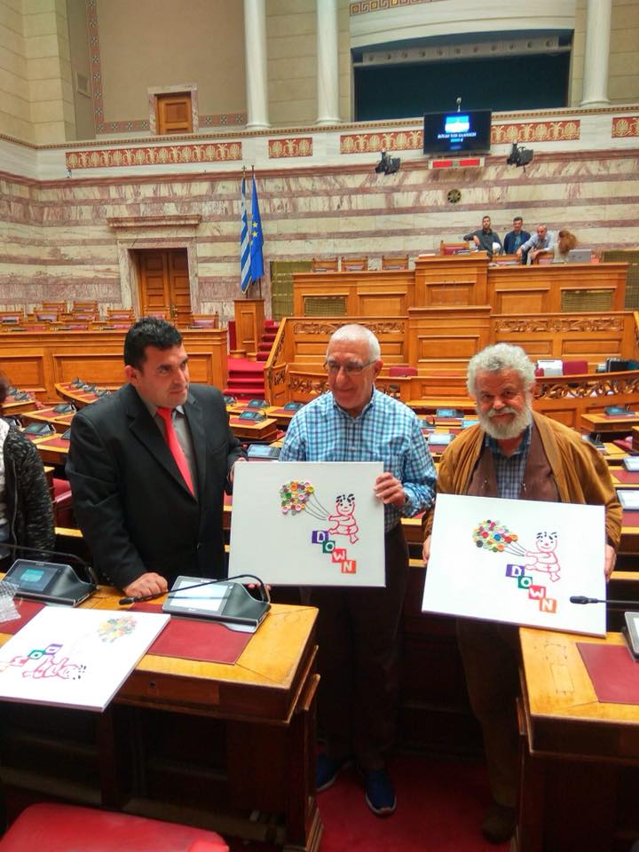 Στην Ολομέλεια της Βουλής υποδέχθηκαν χθες 21 Μαρτίου 2018 τα μέλη του Συλλόγου Συνδρόμου Down Ελλάδας και τους συνοδούς τους ο Νίκος Μανιός, ως Πρόεδρος της Επιτροπής Κοινωνικών υποθέσεων,  μαζί με τον αντιπρόεδρο της Βουλής Νικήτα Κακλαμάνη στο πλαίσιο της Παγκόσμιας ημέρας για το σύνδρομο Down.