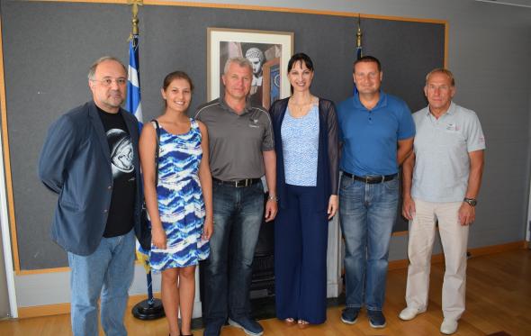 Κρατώντας το σήμα του ΕΟΤ που συμπεριέλαβε στην λίστα των προσωπικών αντικειμένων που πήρε μαζί του στην αποστολή, ο κ. Σκάπλεροφ χαιρέτισε θερμά την έναρξη του Έτους Τουρισμού Ελλάδας- Ρωσίας και αναφέρθηκε στη στενή σύνδεση πολλών Ρώσων κοσμοναυτών με την χώρα μας.