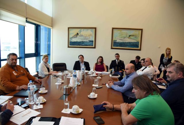 Με πρωτοβουλία της Γενικής Γραμματείας Λιμένων, Λιμενικής Πολιτικής και Ναυτιλιακών Επενδύσεων του Υπουργείου Ναυτιλίας και Νησιωτικής Πολιτικής και του Γενικού Γραμματέα κ Χρήστου Λαμπρίδη, πραγματοποιήθηκαν χθες, Πέμπτη 19 Απριλίου 2018, διαδοχικές συναντήσεις με τον Ομοσπονδία Φορτηγών Αυτοκινητιστών Ελλάδας Οδικών Εμπορευματικών και Επιβατικών Μεταφορών (ΟΦΑΕ), παρουσία του Αρχηγού Λ.Σ.- ΕΛ. ΑΚΤ. Αντιναύαρχου Ράπτη Σταμάτιου και συνεργάτιδας του Γενικού Γραμματέα του Υπουργείου Ναυτιλίας και Νησιωτικής Πολιτικής κ. Τεμπονέρα Διονύσιου, προκειμένου να καθοριστεί μια διαδικασία αξιολόγησης και επίλυσης θεμάτων που απασχολούν το κλάδο.
