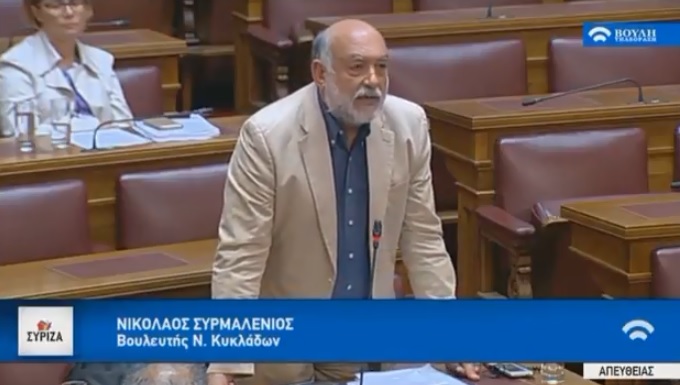 Παρέμβαση του βουλευτή Κυκλάδων Νίκου Συρμαλένιου στην Ολομέλεια της Βουλής