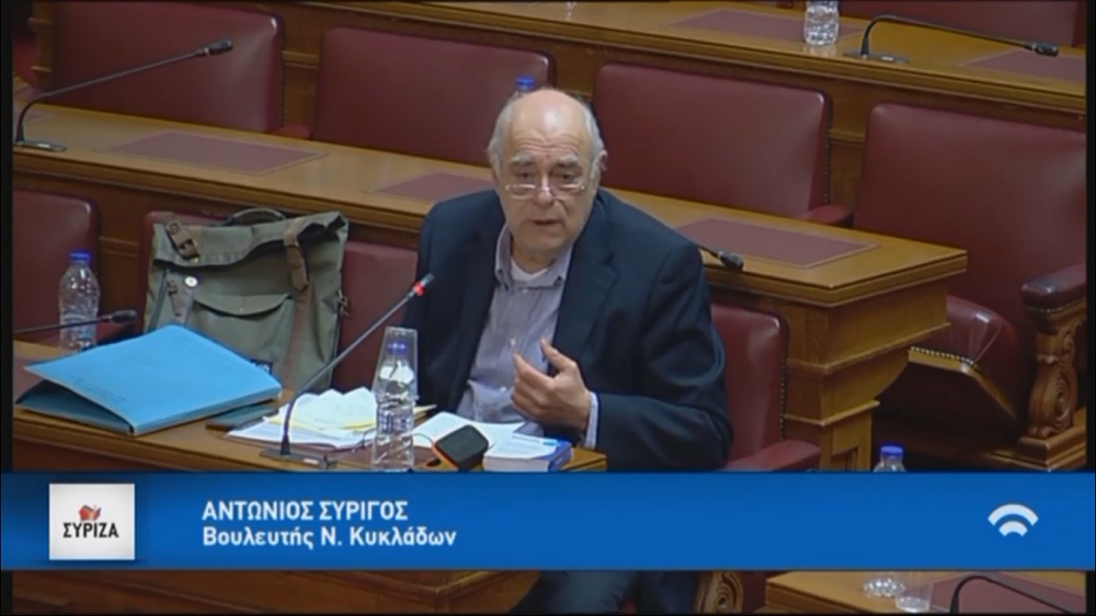 Ο βουλευτής Κυκλάδων του ΣΥΡΙΖΑ, κ. Αντώνης Συρίγος, αναφέρθηκε κυρίως στο ζήτημα της αποσύνδεσης της εκλογής του Προέδρου της Δημοκρατίας από την διάλυση της Βουλής και στο θεσμό της λαϊκής νομοθετικής πρωτοβουλίας, ο οποίος περιλαμβάνεται στην πρόταση του ΣΥ.ΡΙΖ.Α.