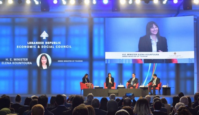 Την επιτυχημένη στρατηγική της Ελλάδας στον τουρισμό που έχει αναγνωριστεί από όλους τους διεθνείς φορείς ως παράδειγμα τουριστικής ανάπτυξης, παρουσίασε η Υπουργός Τουρισμού κα Έλενα Κουντουρά, προσκεκλημένη του Υπουργού Τουρισμού του Λιβάνου κ. Avedis Guidanian και του Προέδρου του Οικονομικού και Κοινωνικού Συμβουλίου του Λιβάνου, κ. Charles Arbid στο Συνέδριο για τη «Βιώσιμη Τουριστική Ανάπτυξη», που διοργανώθηκε στη Βηρυτό.