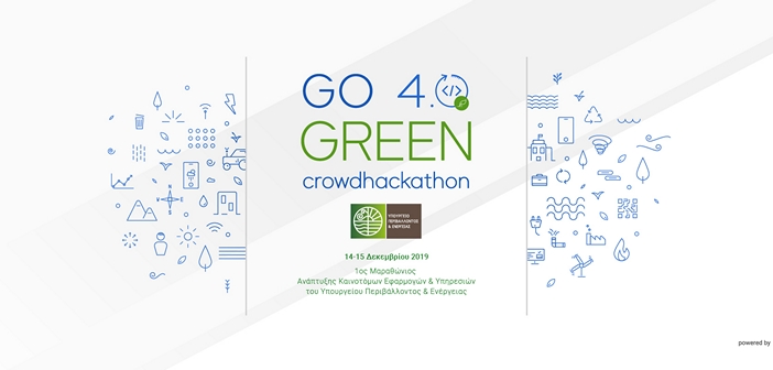 Συγκεκριμένα, το ΥΠΕΝ διοργανώνει στις 14 – 15 Δεκεμβρίου 2019 τον 1ο διήμερο μαραθώνιο καινοτομίας «Go 4.0 GreenCrowdhackathon», στην Τεχνόπολη (Γκάζι), όπου ομάδες θα συνεργαστούν με στόχο την ανάδειξη εφαρμογών πράσινης καινοτομίας, που συμβάλλουν στην αντιμετώπιση των μεγάλων περιβαλλοντικών προκλήσεων της εποχής.