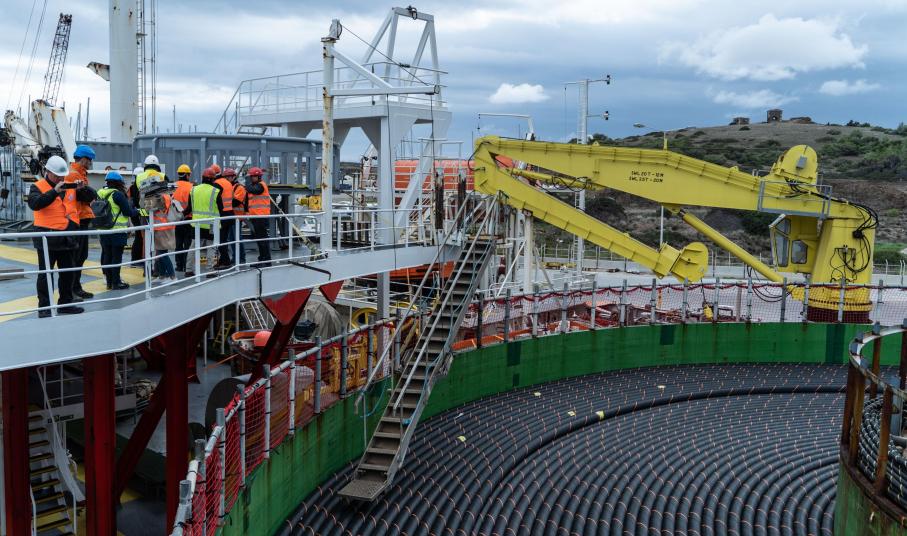 Την Τετάρτη 4 Δεκεμβρίου, εκπρόσωποι των Διοικήσεων του ΑΔΜΗΕ και της NEXANS, η οποία αποτελεί τον ανάδοχο του έργου, επισκέφθηκαν το ειδικό πλοίο που εκτελεί τις εργασίες πόντισης στο Λαύριο. Η πόντιση του πρώτου τμήματος του υποβρύχιου καλωδίου (28 χλμ), θα ολοκληρωθεί εντός των επόμενων ημερών, ενώ το δεύτερο τμήμα (80 χλμ) θα ποντιστεί εντός του α΄ τριμήνου του 2020 από την ανάδοχο εταιρεία.