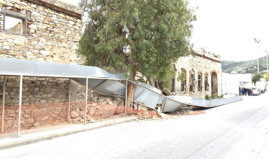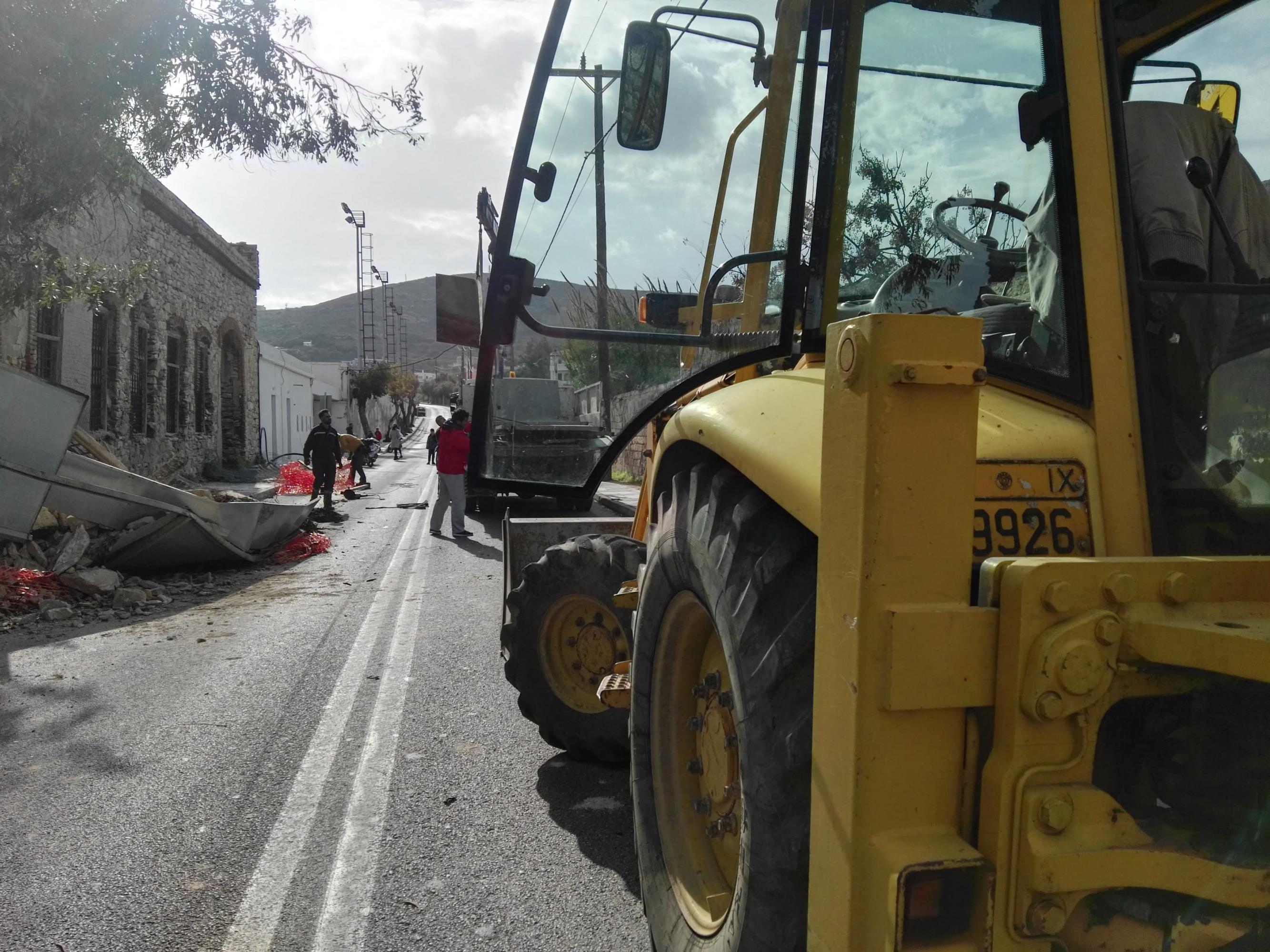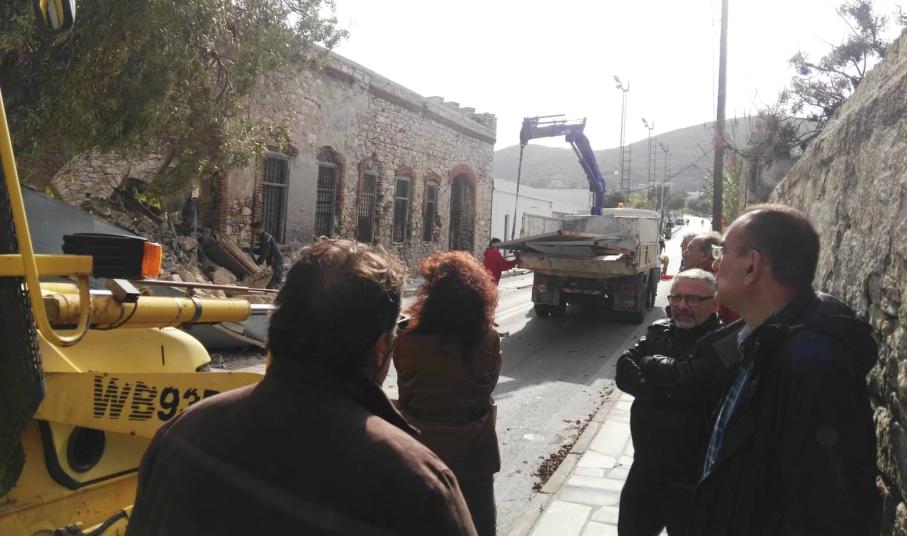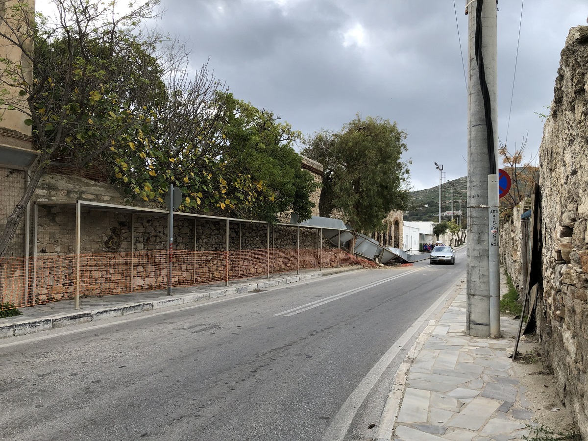 12.00: Άμεσα στο σημείο έφθασαν οχήματα του Δήμου Σύρου - Ερμούπολης ώστε να γίνουν εργασίες ελεγχόμενης κατάρρευσης του επικίνδυνου τμήματος του τοίχου που απέμεινε και γειτνιάζει με τον αθλητικό χώρο, ώστε να αποφευχθεί κάποιο ατύχημα, ωστόσο υπογραμμίζεται πως αυτή η παρέμβαση δεν σημαίνει πως έχει αρθεί η επικινδυνότητα.