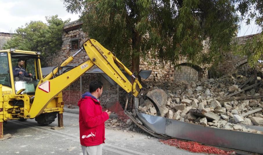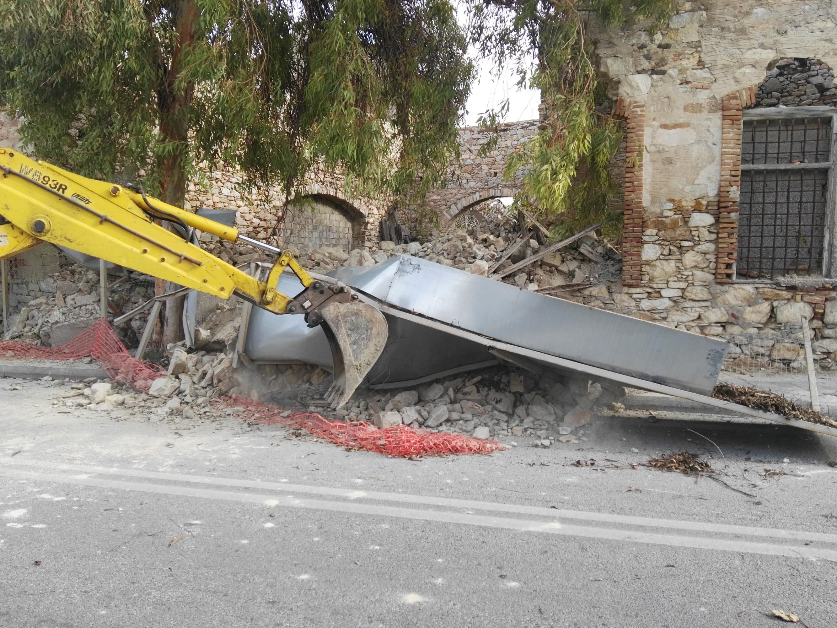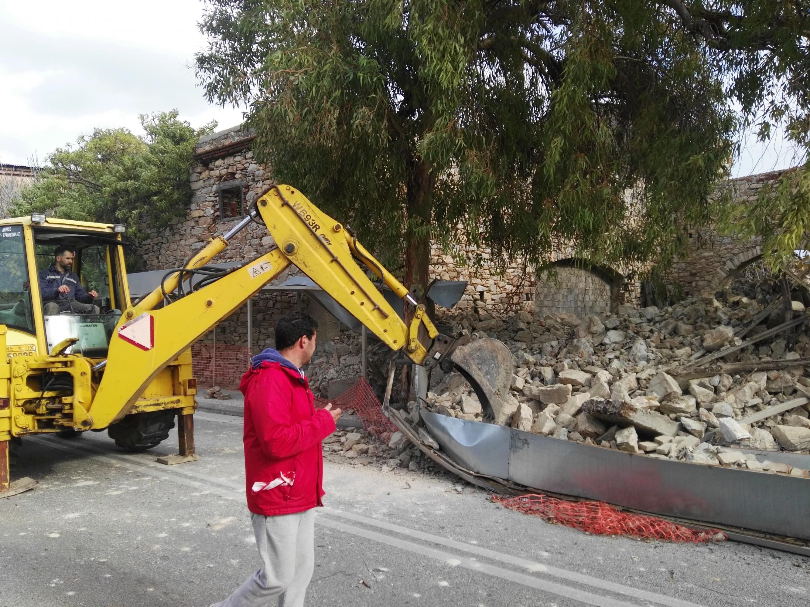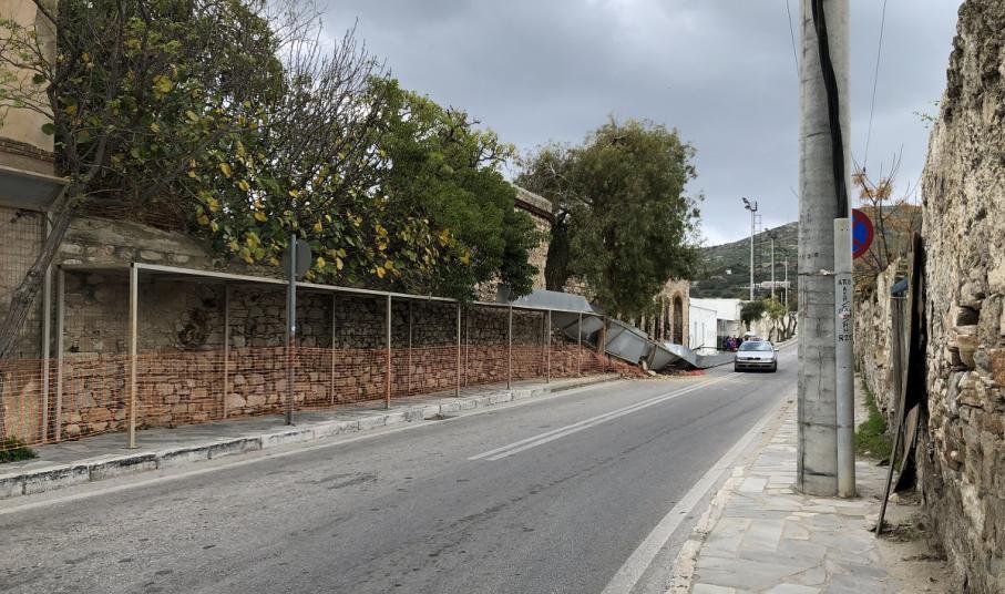 12.00: Άμεσα στο σημείο έφθασαν οχήματα του Δήμου Σύρου - Ερμούπολης ώστε να γίνουν εργασίες ελεγχόμενης κατάρρευσης του επικίνδυνου τμήματος του τοίχου που απέμεινε και γειτνιάζει με τον αθλητικό χώρο, ώστε να αποφευχθεί κάποιο ατύχημα, ωστόσο υπογραμμίζεται πως αυτή η παρέμβαση δεν σημαίνει πως έχει αρθεί η επικινδυνότητα.