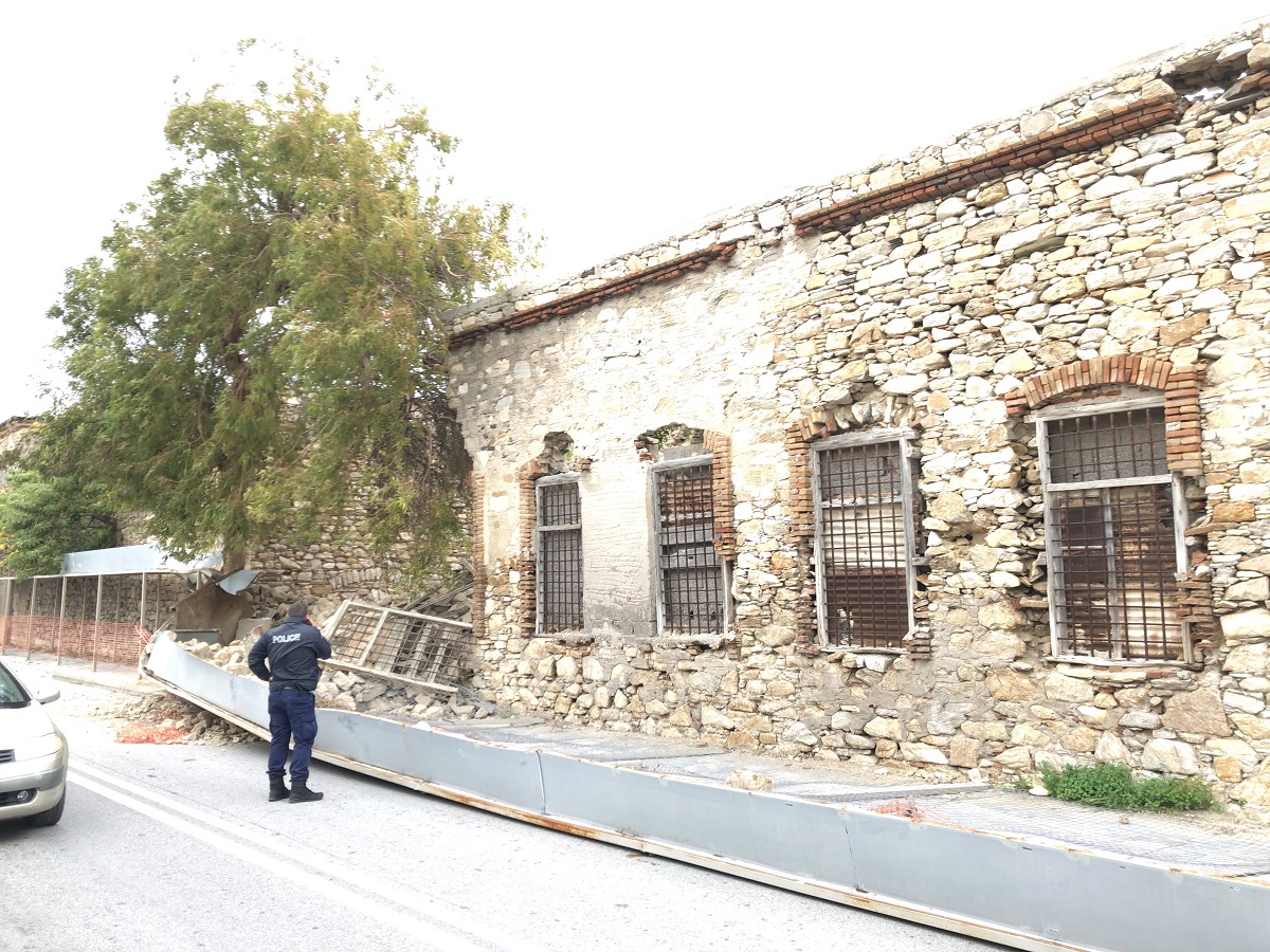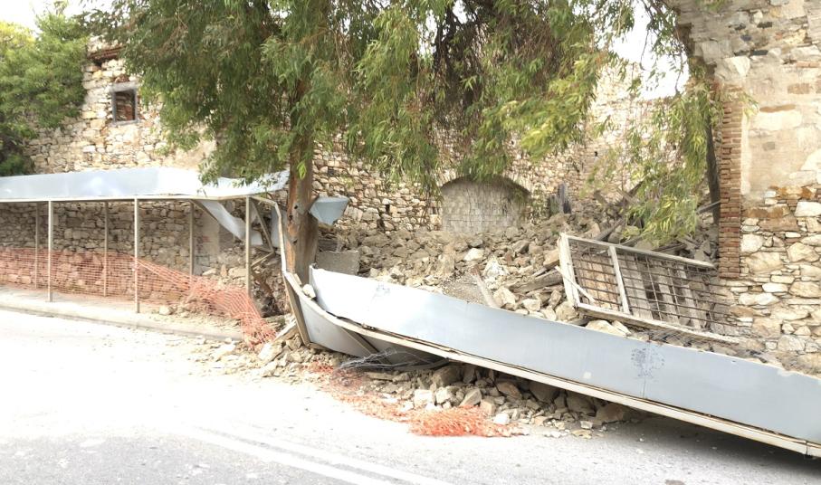 Η μη πρόκληση ατυχήματος ή και δυστυχήματος στο σημείο του πολυσύχναστου δρόμου που καθημερινά σηκώνει όχι μόνον μεγάλο όγκο οχημάτων και δικύκλων, αλλά και πεζών, όπως όμως και μαθητών που μετακινούνται από και προς τα Λύκεια, αποτελεί θαύμα... σήμερα, όπως αποδεικνύουν και οι φωτογραφίες από την πτώση του τοίχου και των υποστυλωμάτων επί του πεζοδρομίου αλλά και του δρόμου.