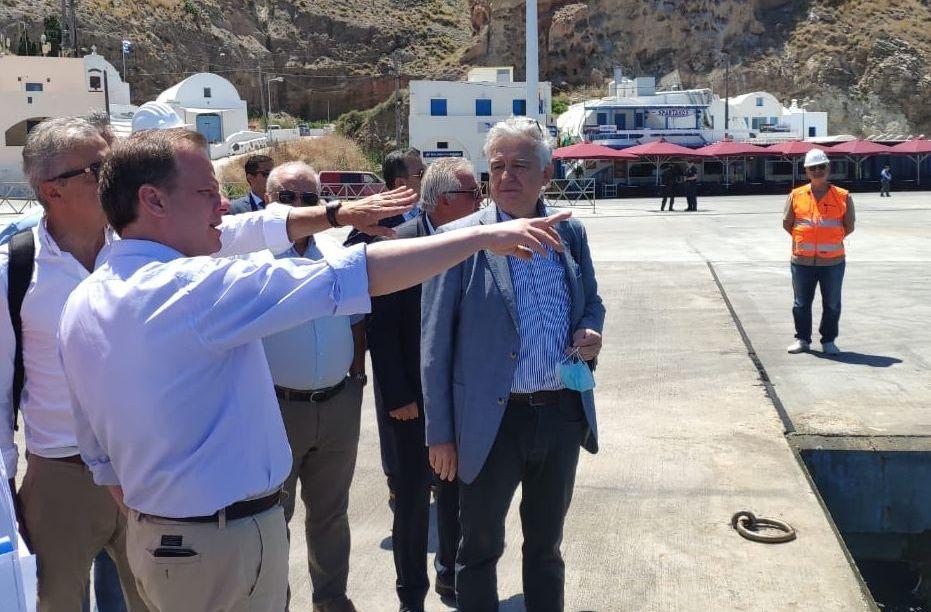Τα έργα στο λιμάνι του Αθηνιού, επιθεώρησε ο Υπουργός Υποδομών και Μεταφορών, κ. Κώστας Καραμανλής μαζί με τον Γενικό Γραμματέα Υποδομών, κ. Γιώργο Καραγιάννη, στο πλαίσιο της επίσκεψης κυβερνητικού κλιμακίου, υπό τον Πρωθυπουργό κ. Κυριάκο Μητσοτάκη, στη Σαντορίνη.