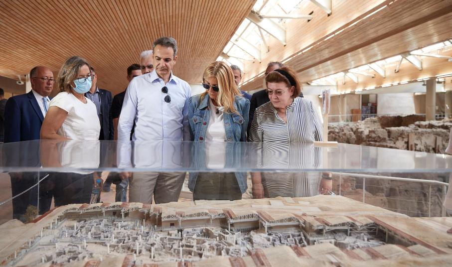 Ειδικότερα, ο Πρωθυπουργός της χώρας έφθασε αεροπορικώς το Σάββατο στο νησί της Σαντορίνης και πλαισιωμένος από Υπουργικό κλιμάκιο μετέβη στον αρχαιολογικό χώρο του Ακρωτηρίου όπου και ξεναγήθηκε, στο Νοσοκομείο Θήρας, ενώ είχε συνάντηση και στη Μητρόπολη με τον Μητροπολίτη κ. Επιφάνιο. Ξεχωριστή συζήτηση είχε με την πλευρά των παραγωγικών φορέων του νησιού, το μεσημέρι της ίδιας ημέρας, με τον Δήμαρχο Θήρας, Αντώνη Σιγάλα και τον Περιφερειάρχη Ν. Αιγαίου, Γιώργο Χατζημάρκο να καλωσορίζουν τον Πρωθυπουργό και να μιλούν για τα νησιά στο πλαίσιο μίας νέας κανονικότητας που “ξημέρωσε” για όλο τον κόσμο εξαιτίας της πανδημίας.