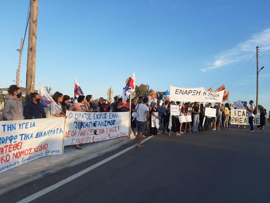 Πρέπει να σημειωθεί πως παράσταση διαμαρτυρίας με φόντο την παρουσία του Κυριάκου Μητσοτάκη στη Σαντορίνη, πραγματοποίησαν τα μέλη του Συνδικάτου Εργατοϋπαλλήλων του Τουρισμού, έξω από το Νοσοκομείο Θήρας, κατά την επίσκεψη του ίδιου και του κ. Κικίλια σε αυτό.