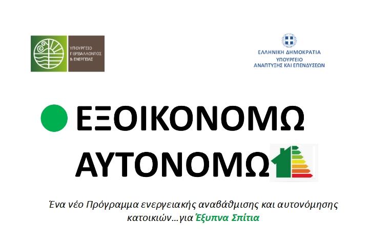 Στις αρχές Νοεμβρίου θα ξεκινήσει να «τρέχει» το «ΕΞΟΙΚΟΝΟΜΩ-ΑΥΤΟΝΟΜΩ», το νέο πρόγραμμα ενεργειακής αναβάθμισης και αυτονόμησης κατοικιών, που αποτελεί το διάδοχο σχήμα των προγραμμάτων «Εξοικονόμηση κατ’ Οίκον», με ενισχυμένο προϋπολογισμό –που ανέρχεται στα 850 εκατ. ευρώ-, αυξημένα ποσοστά επιδοτήσεων και διευρυμένη γκάμα επιλέξιμων παρεμβάσεων, με γνώμονα την μεγιστοποίηση του οφέλους ως προς την ενεργειακή εξοικονόμηση.