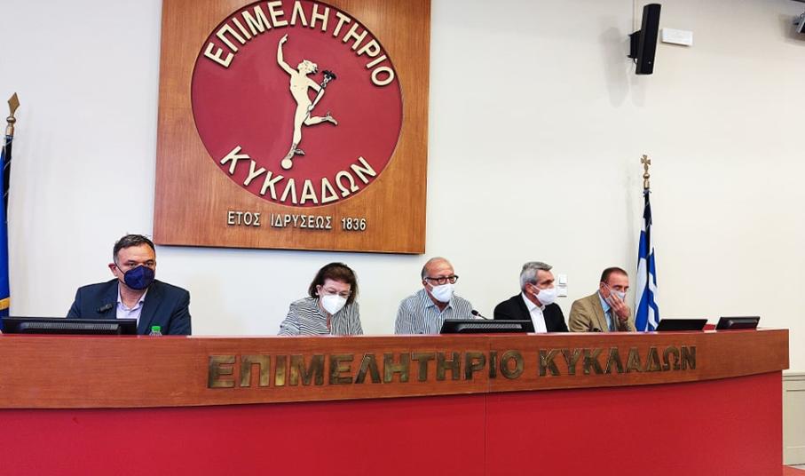 Στη σύσκεψη συμμετείχαν ο Περιφερειάρχης Νοτίου Αιγαίου κ. Γ. Χατζημάρκος, ο Γενικός Γραμματέας του Υπουργείου κ. Γ. Διδασκάλου, ο Χωρικός Αντιπεριφερειάρχης Κυκλάδων κ. Γ. Λεονταρίτης, ο Βουλευτής Κυκλάδων κ. Φίλιππος Φόρτωμας και ο Αντιπεριφερειάρχης Μεταφορών κι Επικοινωνιών Κυκλάδων κ. Μ. Δαδάος.