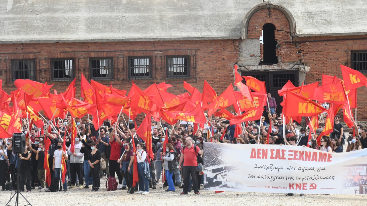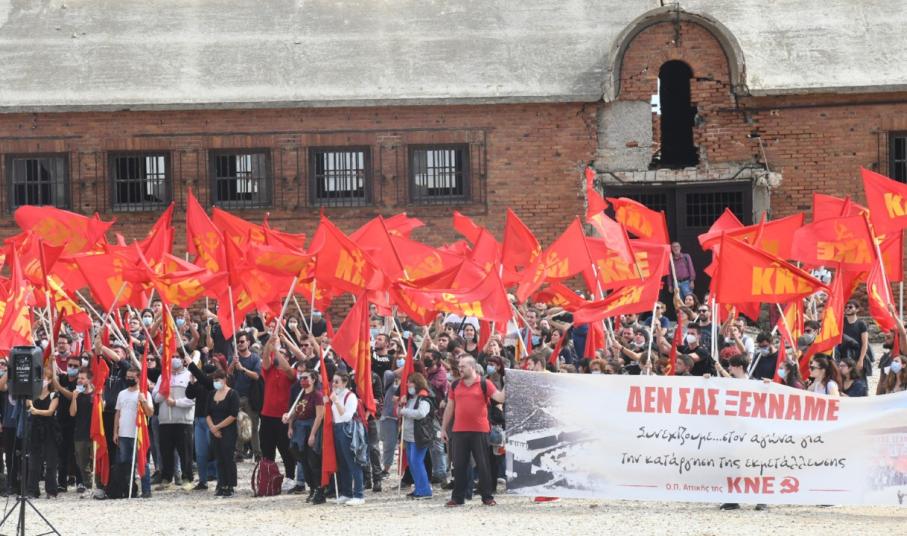 «Τα μέλη της ΚΝΕ στεκόμαστε με βαθιά συγκίνηση, με σεμνότητα και απόλυτο σεβασμό» σημείωσε μεταξύ άλλων στο σύντομο χαιρετισμό του ο Ιάσωνας Φανός, μέλος του Γραφείου του ΚΣ της ΚΝΕ.