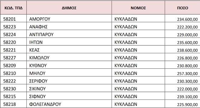 Όπως συγκεκριμένα αναφέρει η απόφαση: “1. Κατανέμουμε, από τον λογαριασμό του Υπουργείου Εσωτερικών που τηρείται στο Ταμείο Παρακαταθηκών και Δανείων με τον τίτλο «Κεντρικοί Αυτοτελείς Πόροι των Δήμων», ποσό ύψους 27.681.000,00 € σε μικρούς νησιωτικούς και ορεινούς δήμους.