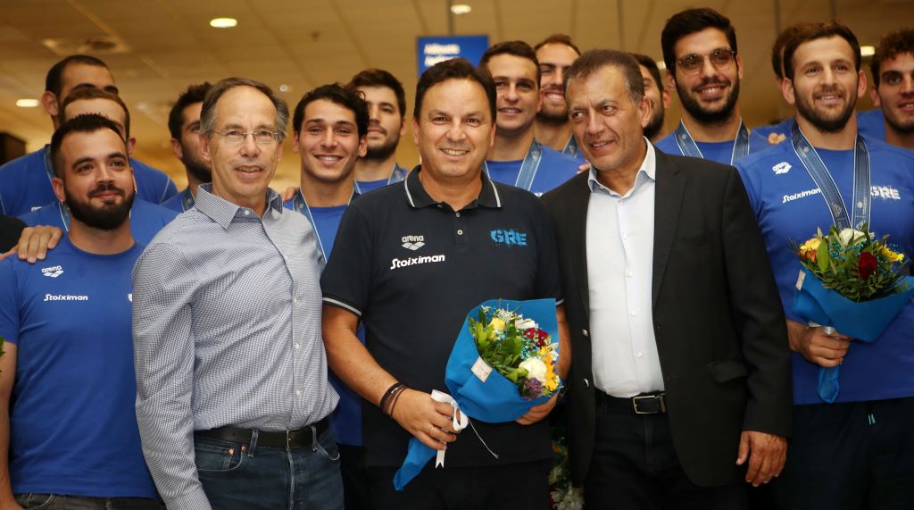 Την Εθνική ομάδα υδατοσφαίρισης των ανδρών που κατέκτησε το ασημένιο μετάλλιο στο Παγκόσμιο Πρωτάθλημα στη Φουκουόκα, υποδέχτηκε τα ξημερώματα της Δευτέρας, ο αναπληρωτής υπουργός Παιδείας, αρμόδιος για θέματα αθλητικού, Γιάννης Βρούτσης, συνοδευόμενος από τον γ.γ. Αθλητισμού, Γιώργο Μαυρωτά.