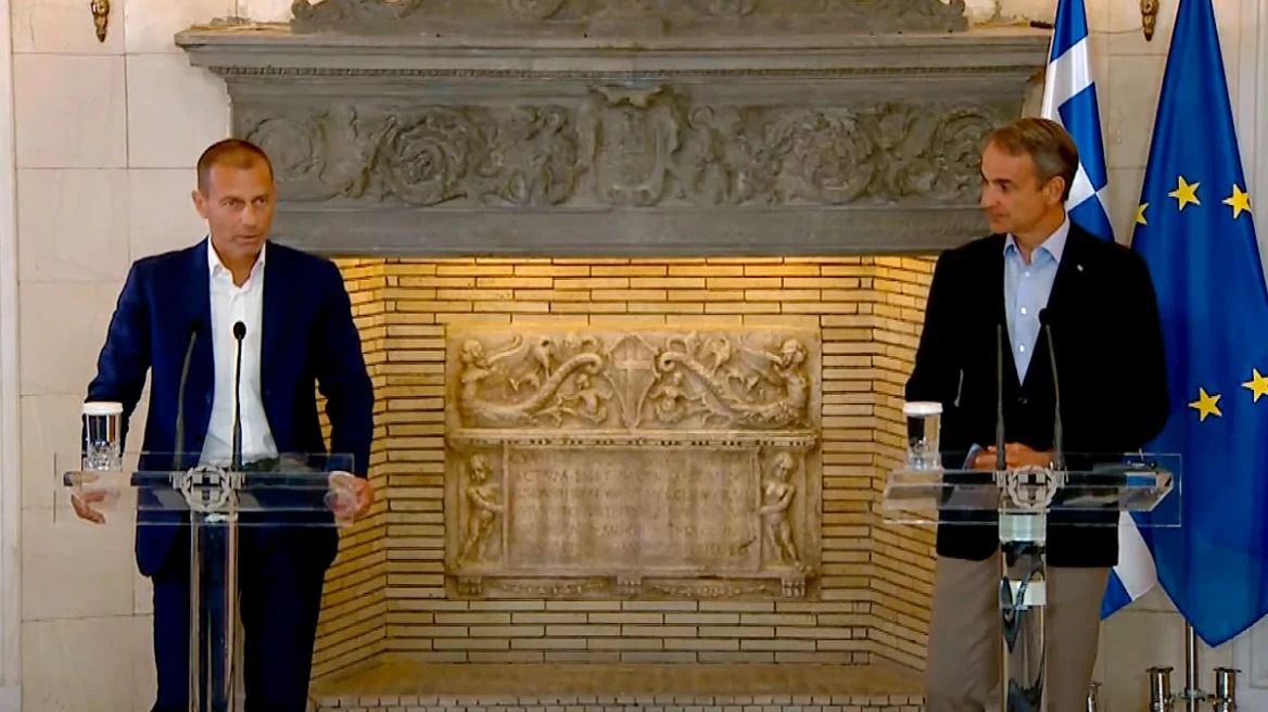O πρωθυπουργός Κυριάκος Μητσοτάκης και ο πρόεδρος της UEFA, Αλεξάντερ Τσέφεριν πραγματοποίησαν κοινές δηλώσεις, μετά τη συνάντησή τους με τους τέσσερις «μεγάλους» του ελληνικού ποδοσφαίρου, στο πλαίσιο πρωτοβουλιών για την αντιμετώπιση της οπαδικής βίας μετά τα αιματηρά επεισόδια στη Νέα Φιλαδέλφεια.