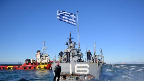 Στο λιμάνι της Θεσσαλονίκης το αντιτορπιλικό Βέλος - Εντατικές προσπάθειες για να στεγανοποιηθεί το ρήγμα που έχει προκληθεί