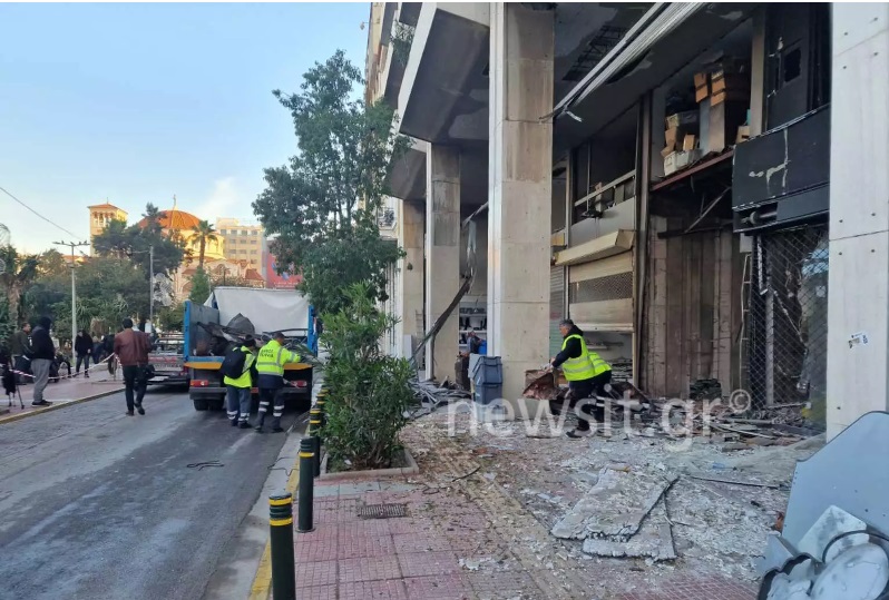 Οι τζαμαρίες πολλών καταστημάτων είναι κατεστραμμένες και από τύχη δεν τραυματίστηκε ένας άστεγος που είχε βρει καταφύγιο σε ένα κοντινό κτίριο.