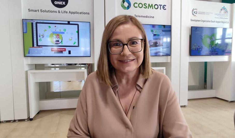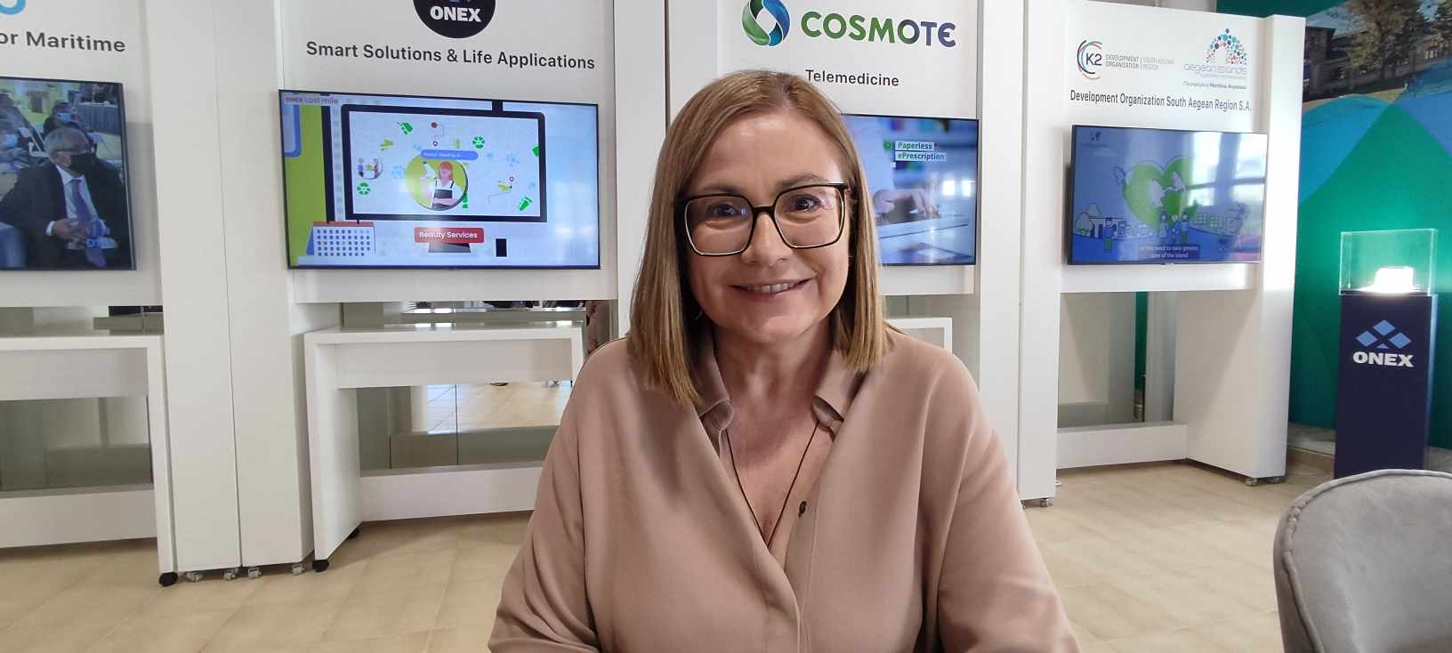 Η ίδια παραχώρησε συνέντευξη κατά την παραμονή της στη Σύρο, την Παρασκευή, οπότε και επισκέφθηκε το νησί για να πραγματοποιήσει μία σειρά σημαντικών επαφών. Από τους πρώτους σταθμούς της, αποτέλεσε το Νεώριο Σύρου, όπου και είχε την ευκαιρία να συζητήσει με τον εκπρόσωπο της γενικής διεύθυνσης, Γιάννη Βαμβακούση, απουσία του προέδρου της ONEX, Πάνου Ξενοκώστα αλλά και να ξεναγηθεί στις εγκαταστάσεις του ναυπηγείου. Αμέσως μετά, μετέβη στο Κέντρο Θαλάσσιας Τεχνολογία και Καινοτομίας της ONEX Shipyards & Technologies, όπου και έκανε χαιρετισμό στο πλαίσιο της εκδήλωσης με θέμα “Εκπαίδευση των εργαζομένων στη νέα εποχή πάνω σε τεχνολογίες και προϊόντα πράσινης μετάβασης της ναυπηγικής βιομηχανίας – Η εμπειρία του πράσινου μετασχηματισμού του έργου ENERSHIP”. Στελέχη και εργαζόμενοι του Νεωρίου είχαν τη δυνατότητα να μιλήσουν με την ίδια, αλλά και να εκπαιδευτούν κατά τη δίωρη εκδήλωση, προκειμένου να τεθεί μία πρώτη βάση που θα εξελιχθεί σταδιακά και θα αφορά στην ανταπόκριση των ναυπηγείων στις απαιτήσεις των πλοιοκτητών για μετασκευές και κατασκευές νέων πλοίων, δεδομένου του στόχου που θέτει η Ε.Ε. για μείωση των εκπομπών στις θαλάσσιες μεταφορές.
