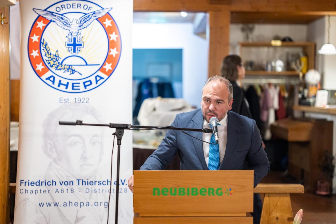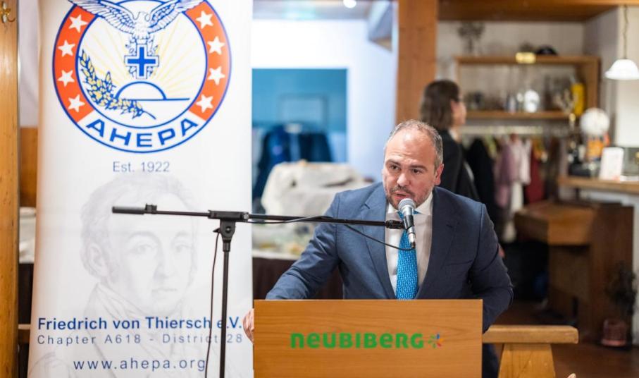 Κορυφαία στιγμή της επίσκεψης αποτέλεσε η εκδήλωση της AHEPA Μονάχου το βράδυ του Σαββάτου, όπου ο κ. Φόρτωμας απηύθυνε χαιρετισμό, αναγνωρίζοντας τη σημαντική συμβολή της οργάνωσης στην προώθηση του ελληνικού πολιτισμού και των εθνικών ζητημάτων στη Γερμανία, καθώς και στη σύσφιξη των σχέσεων φιλίας Ελλάδας και Γερμανίας. Στα πλαίσια αυτά είχε την ευκαιρία να συναντηθεί με τον Υφυπουργό Εξωτερικών της Γερμανίας, Φλόριαν Χαν, έναν φίλο της Ελλάδας, με τον οποίο αντάλλαξαν απόψεις και έθεσαν τις βάσεις για μελλοντική συνεργασία