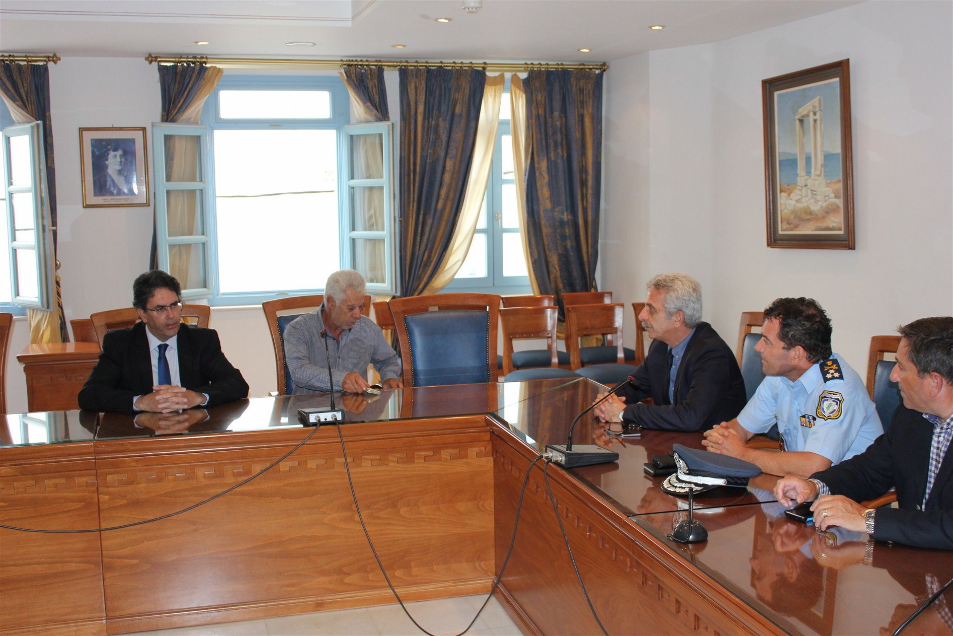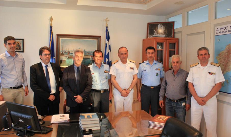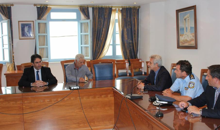 Ο Δήμαρχος ευχαρίστησε τον Γενικό Γραμματέα Δημόσιας Τάξης και τον Αρχηγό του Λιμενικού Σώματος για την επίσκεψή τους  και για το ενδιαφέρον τους να αφουγκραστούν τα προβλήματα των νησιωτών και επισήμανε την αγαστή συνεργασία της Δημοτικής Αρχής τόσο με τον Λιμενάρχη Νάξου, όπως και με τον Διοικητή του Αστυνομικού Τμήματος Νάξου. Ταυτόχρονα επισήμανε την αναγκαιότητα στελέχωσης του Αστυνομικού Τμήματος και του Λιμεναρχείου εν όψει της καλοκαιρινής περιόδου, αυξάνοντας έτσι το αίσθημα ασφάλειας τόσο των μόνιμων κατοίκων του νησιού, καθώς και των επισκεπτών.