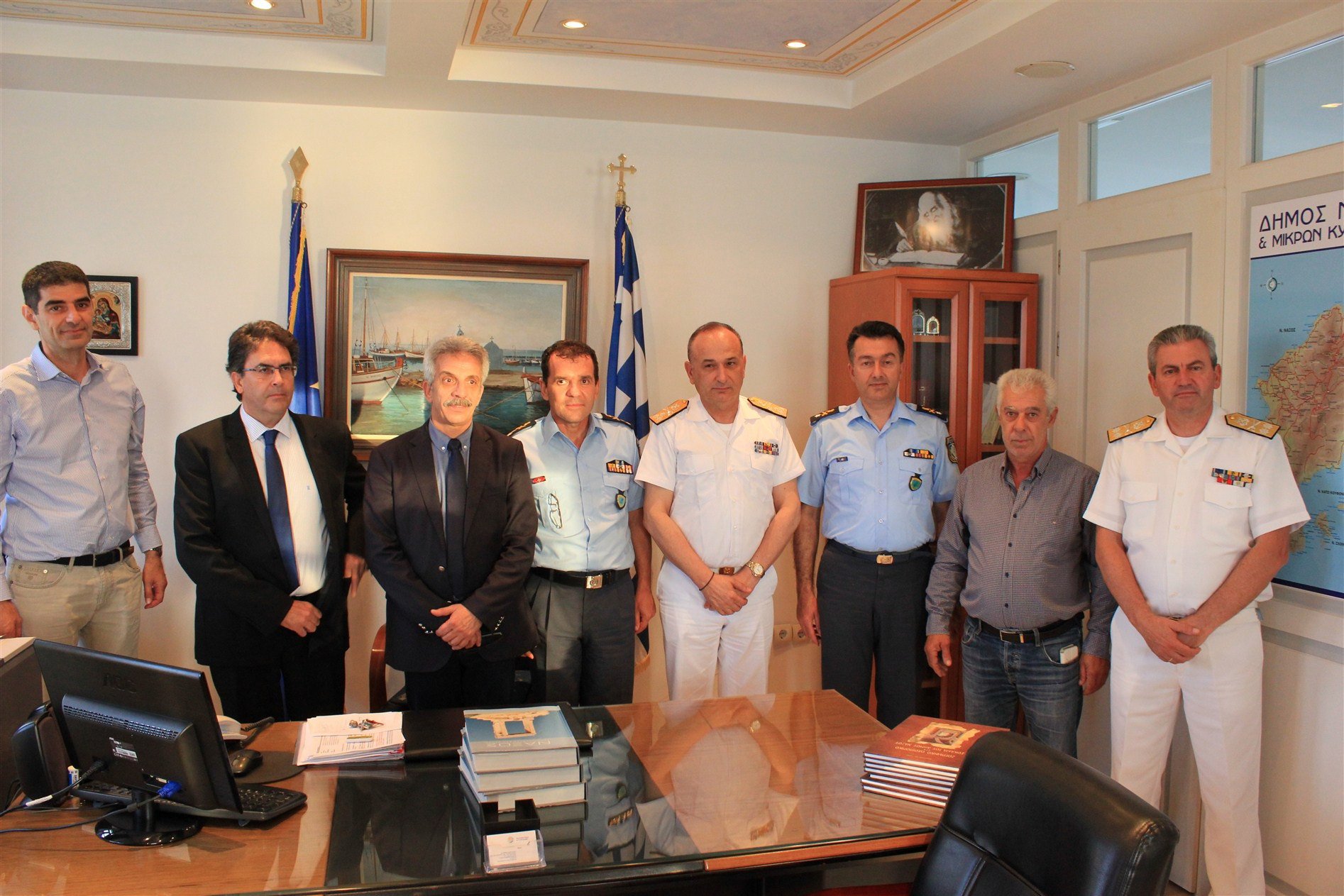 Τον Γενικό Γραμματέα Δημόσιας Τάξης Δημήτρη Αναγνωστάκη δέχθηκε χθες στο γραφείο του ο Δήμαρχος Νάξου και Μικρών Κυκλάδων Μανόλης Μαργαρίτης, παρουσία του Αντιδημάρχου Δημήτρη Λιανού και του Προέδρου του Λιμενικού Ταμείου Νίκου Σέργη.