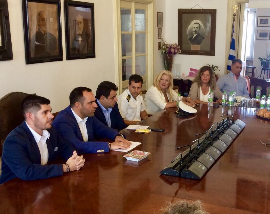 Έπειτα από την κατ' ιδίαν συνάντηση των δυο ανδρών, πραγματοποιήθηκε διευρυμένη σύσκεψη στην Αίθουσα του Δημοτικού Συμβουλίου Μυκόνου, παρουσία του Πρόεδρου του Δημοτικού Συμβουλίου, Αντιδημάρχων, Δημοτικών Συμβούλων και της Λιμενικής Αρχής του νησιού, όπου συζητήθηκαν εκτενέστερα διάφορα θέματα, όπως οι ακτοπλοϊκές συνδέσεις, οι απλοποιήσεις των αδειοδοτήσεων για έργα στο λιμάνι, η ένταξη της χρηματοδότησης της προμήθειας προσκρουστήρων μέσω ΕΣΠΑ, η έγκριση της μελέτης για την αποκατάσταση των λιμενικών εγκαταστάσεων της Δήλου, η επαναφορά της γνώμης του δημοτικού συμβουλίου για τις πλωτές εξέδρες, η έμμεση επιστροφή φόρων από την κατάργηση των αυξημένων συντελεστών ΦΠΑ και η πρόοδος αδειοδότησης του υδατοδρομίου.