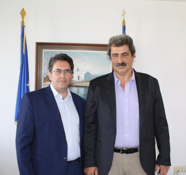Με τον Αναπληρωτή Υπουργό Υγείας Παύλο Πολάκη συναντήθηκε την Παρασκευή 6 Οκτωβρίου ο Δήμαρχος Νάξου και Μικρών Κυκλάδων Μανόλης Μαργαρίτης. Στην εθιμοτυπική συνάντηση, η οποία πραγματοποιήθηκε στο πλαίσιο της επίσκεψης του Αναπληρωτή Υπουργού στη Νάξο για την τέλεση των εγκαινίων της Μονάδας Τεχνητού Νεφρού, συμμετείχαν ακόμα ο Πρόεδρος του ΕΚΑΒ Κωνσταντίνος Καρακατσιανόπουλος, η επικεφαλής της 2η Υγειονομικής ΥΠΕ Πειραιώς και Αιγαίου Όλγα Ιορδανίδου, η Διοικήτρια του Νοσοκομείου Σύρου Μαργαρίτα Μπουραντά, ο Αν. Διοικητής του Νοσοκομείου Νάξου Κώστας Απιδόπουλος και οι Βουλευτές Κυκλάδων Νίκος Μανιός, Νίκος Συρμαλένιος και Αντώνης Συρίγος, ο Βουλευτής Γιάννης Θεωνάς, καθώς και οι Αντιδήμαρχοι Δημήτρης Λιανός και Μανόλης Πολυκρέτης.