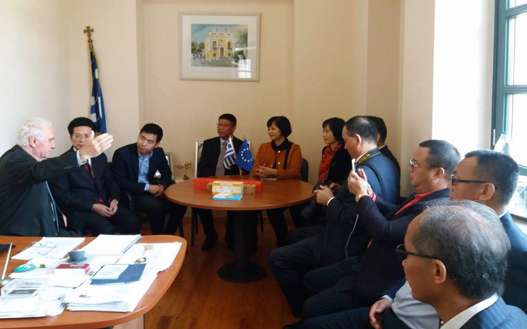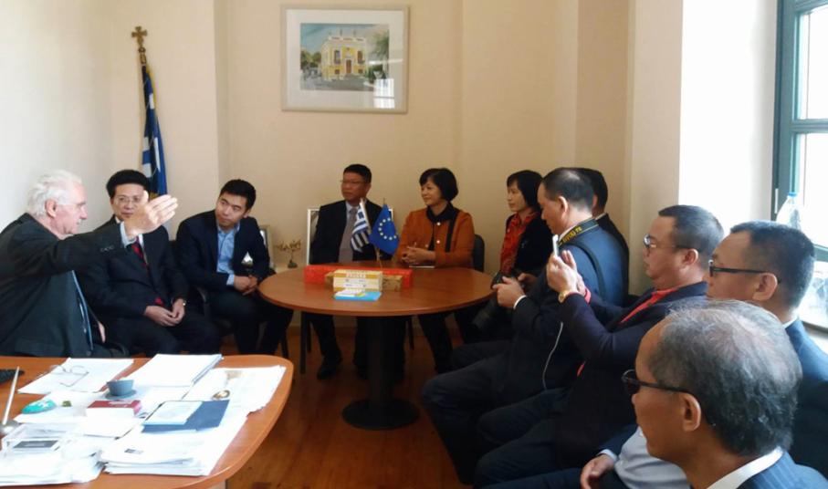 Την αντιπροσωπεία αποτελούσαν αξιωματούχοι του Δήμου της περιοχής, ο Πρόεδρος του Δημοτικού Συμβουλίου της πόλης Huizhou (με 5 εκατομμύρια κατοίκους) και μέλος της Ένωσης Διπλωματών Huang Zhizhong, που δραστηριοποιείται στον τουρισμό και στον κατασκευαστικό τομέα, άλλα μέλη της Δημοτικής Αρχής, καθώς και τρεις επιχειρηματίες που εξερευνούν τις δυνατότητες επενδύσεων στην Ελλάδα.